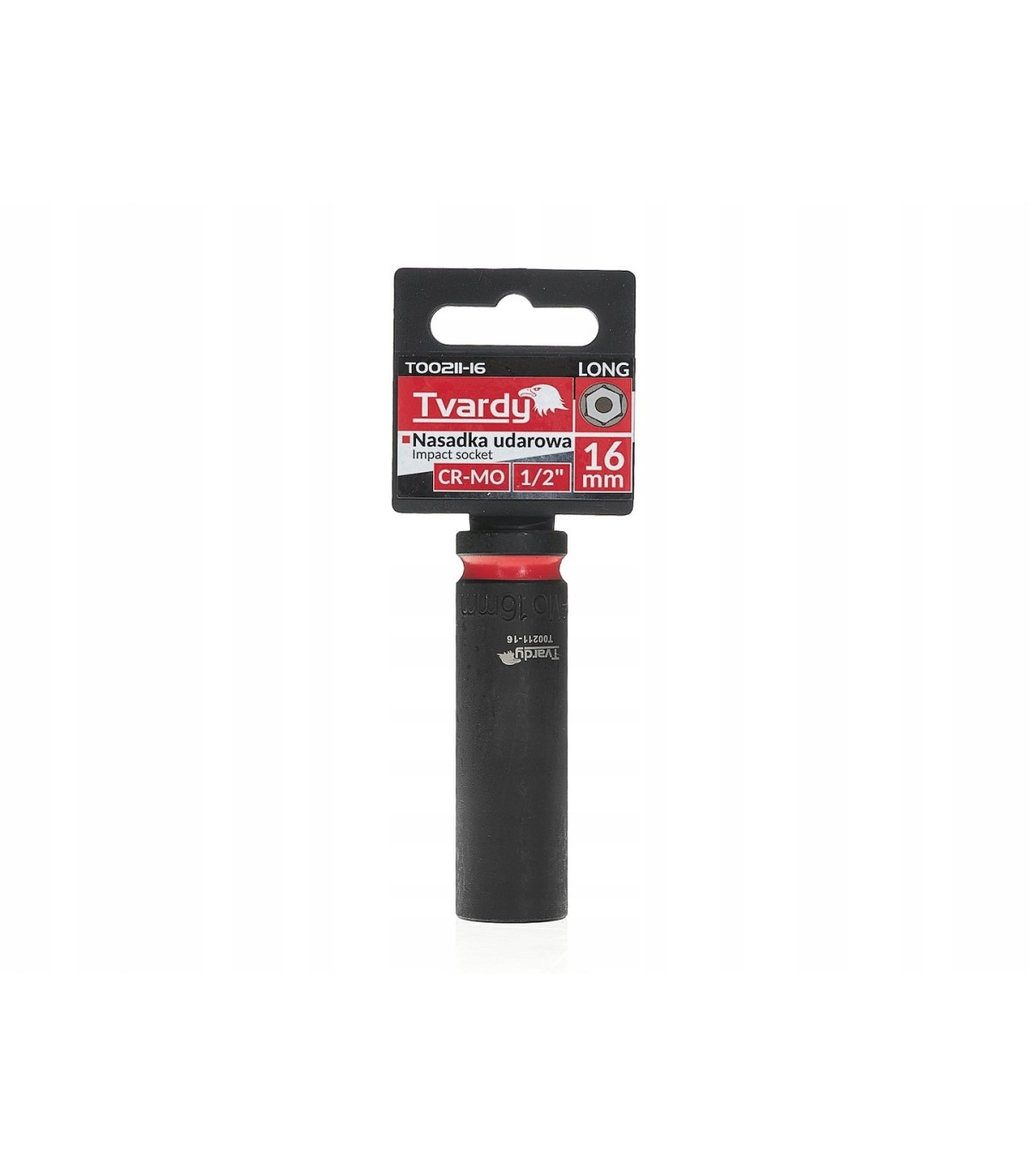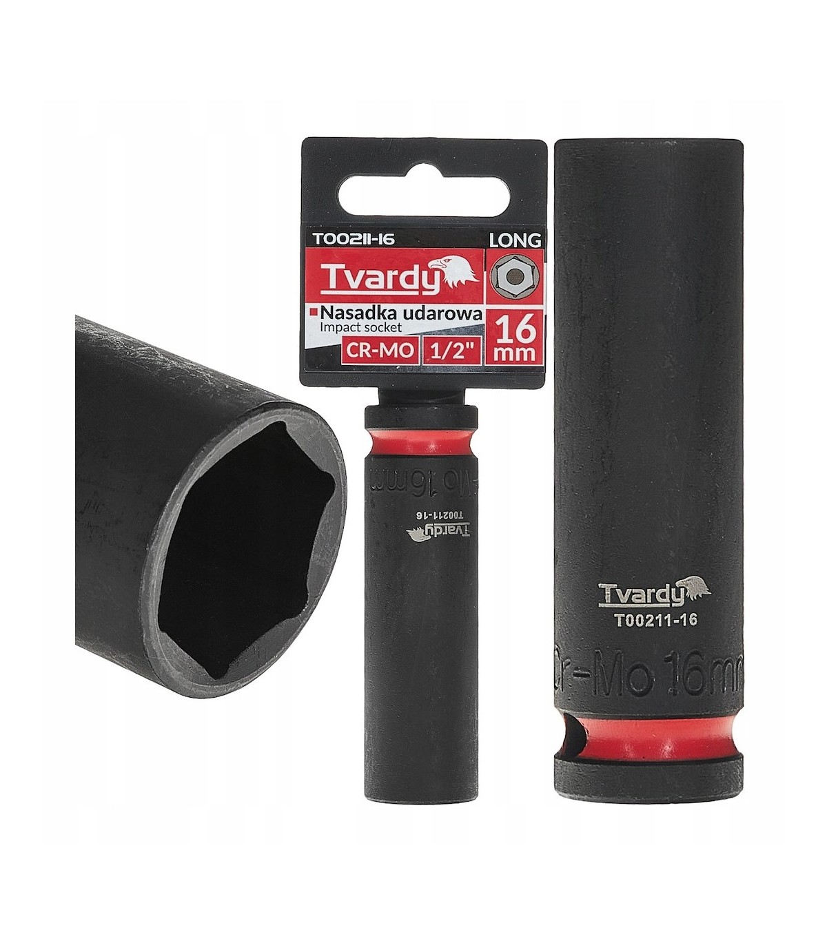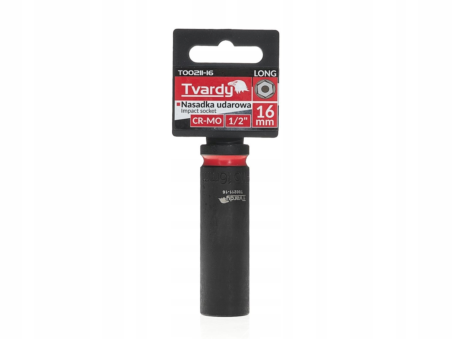 Profesjonalna długa nasadka udarowa marki Tvardy w rozmiarze 16mm, zaprojektowana specjalnie do pracy z narzędziami udarowymi.