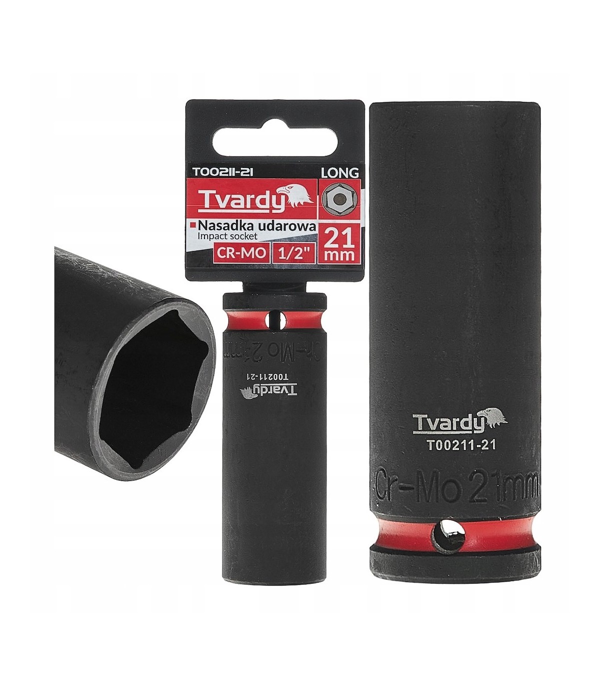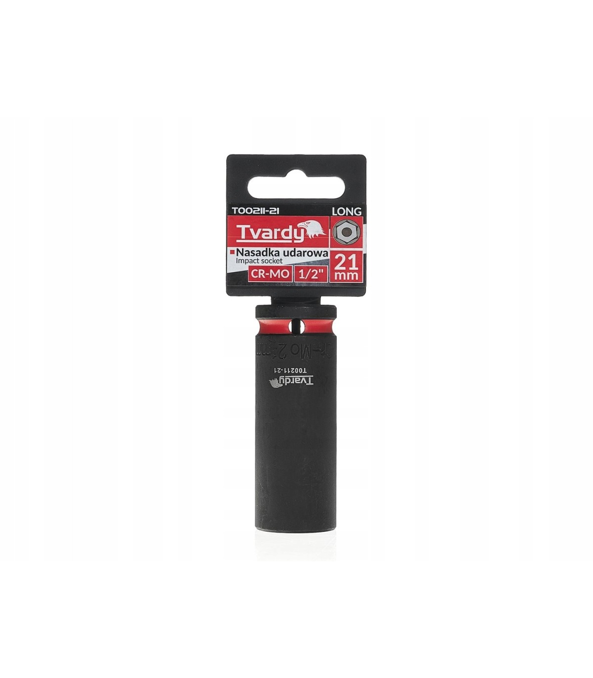 Profesjonalna długa nasadka udarowa marki Tvardy w rozmiarze 21mm, zaprojektowana specjalnie do pracy z kluczami udarowymi – pneumatycznymi, elektrycznymi oraz akumulatorowymi.