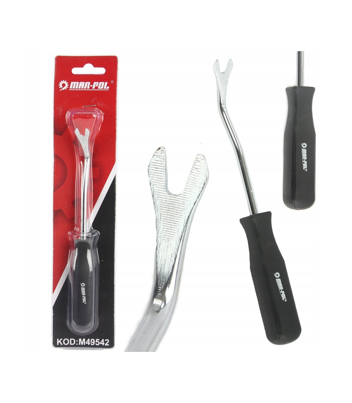 Ściągacz do tapicerki jest przeznaczony do wypinania spinek, które łączą różne elementy wnętrza oraz karoserii pojazdu. Doskonale sprawdza się w demontażu paneli drzwiowych, desek rozdzielczych oraz innych elementów wykończenia wnętrza samochodu.