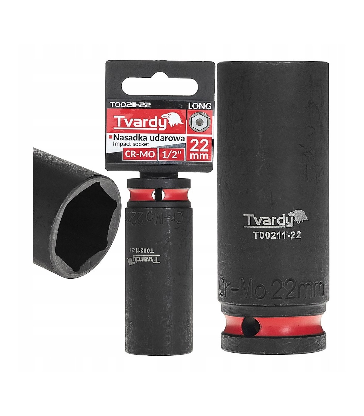 Profesjonalna długa nasadka udarowa marki Tvardy w rozmiarze 22mm, stworzona specjalnie do pracy z kluczami udarowymi – pneumatycznymi, elektrycznymi oraz akumulatorowymi.