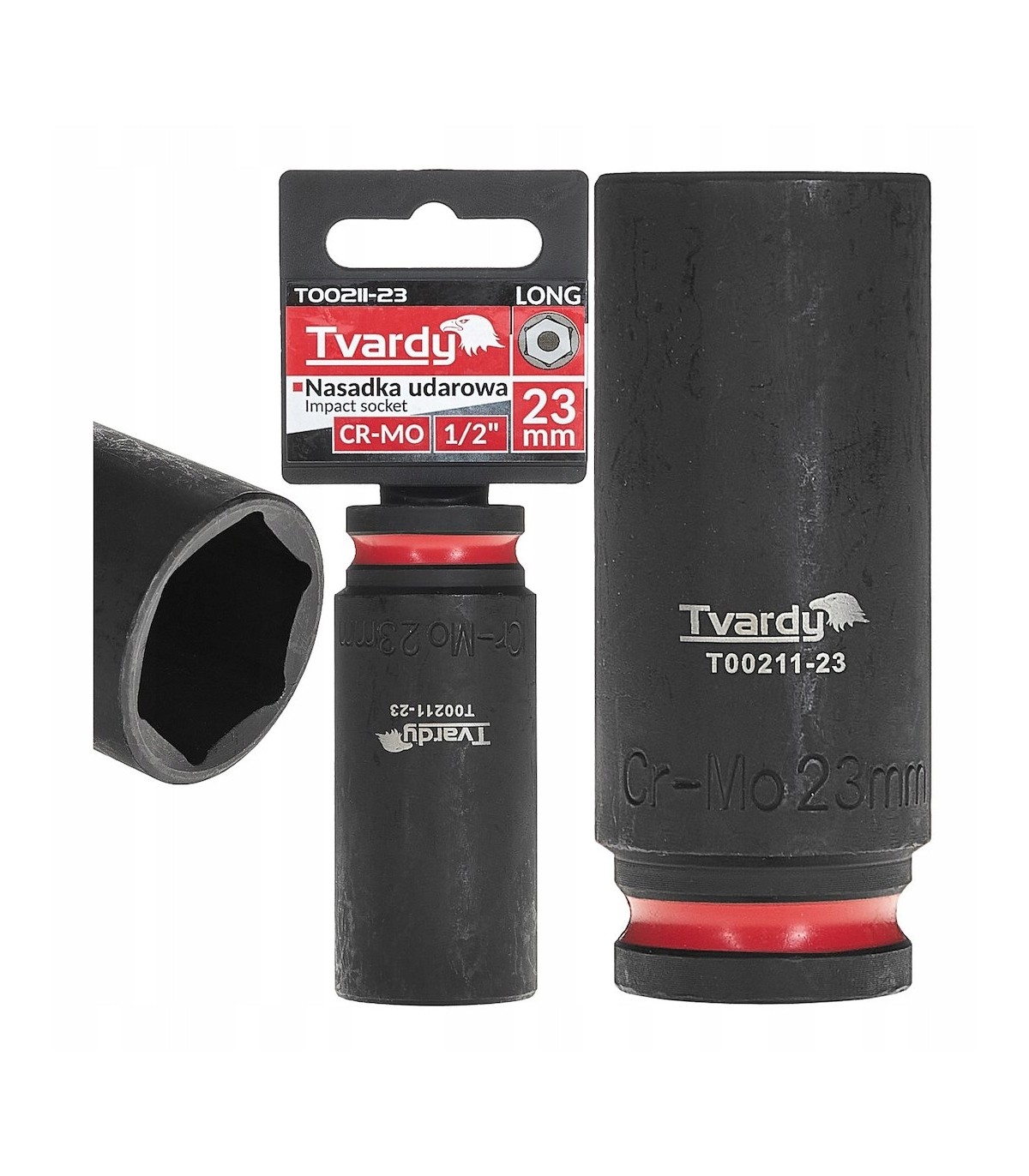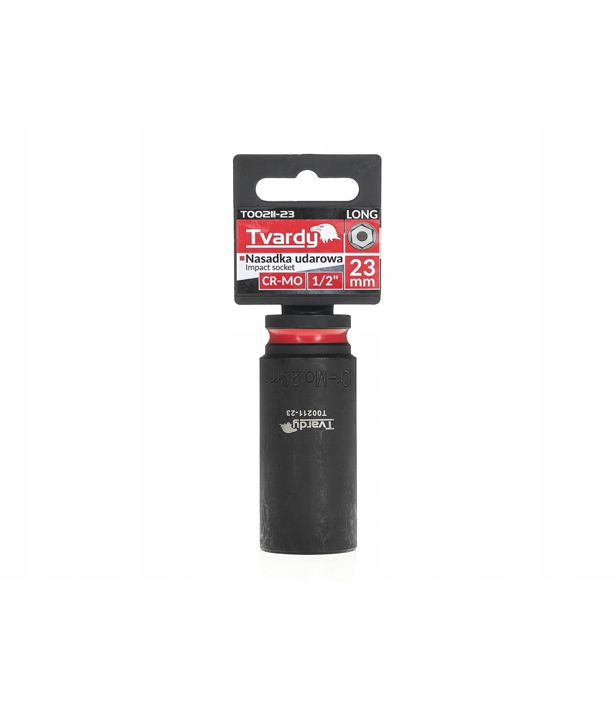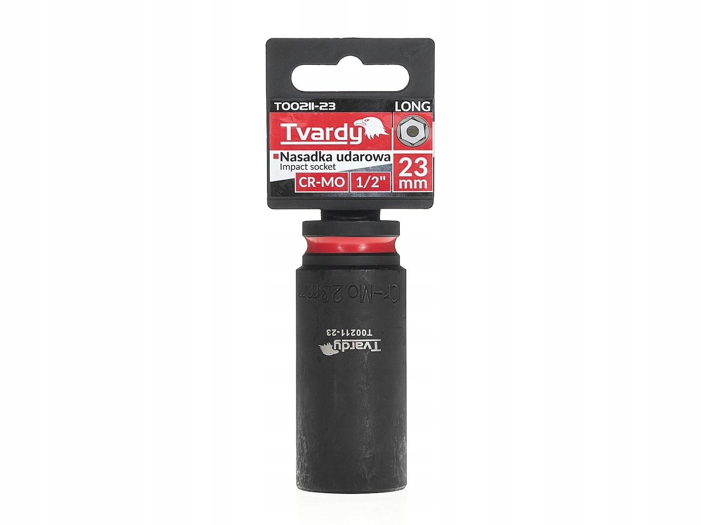 Profesjonalna długa nasadka udarowa marki Tvardy w rozmiarze 23mm, zaprojektowana do pracy z kluczami udarowymi – pneumatycznymi, elektrycznymi oraz akumulatorowymi.