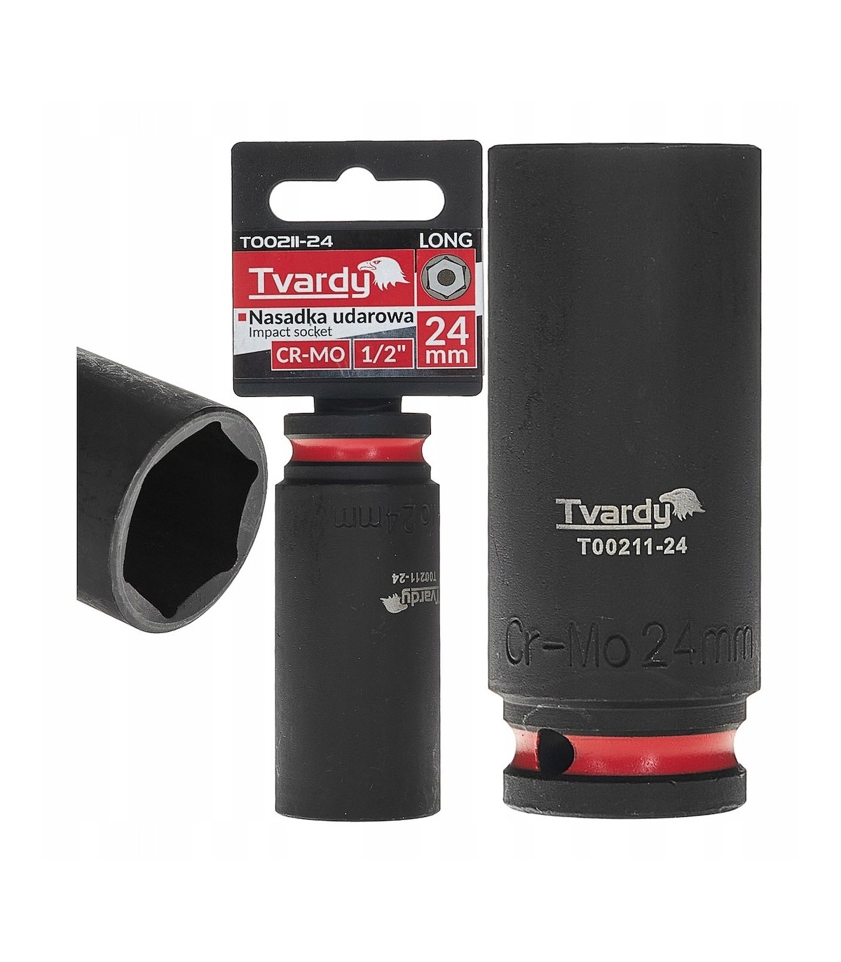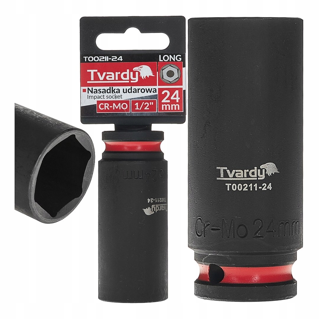 Profesjonalna długa nasadka udarowa marki Tvardy w rozmiarze 24mm, zaprojektowana specjalnie do pracy z kluczami udarowymi – pneumatycznymi, elektrycznymi i akumulatorowymi.