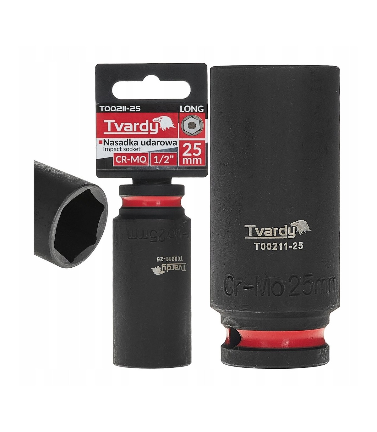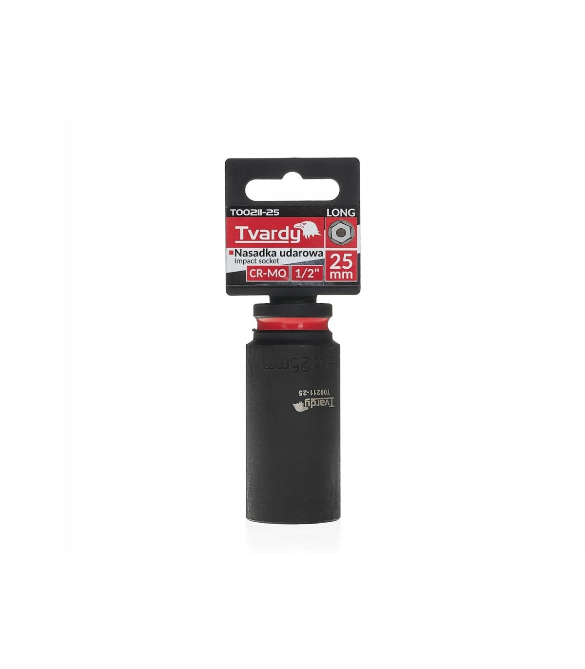 Nasadka udarowa długa 1/2" 25mm TVARDY to profesjonalne rozwiązanie, które gwarantuje niezawodność w każdych warunkach. Wykonana ze stali CR-MO, odporna na ekstremalne siły, sprawdzi się wszędzie tam, gdzie liczy się precyzja i trwałość.