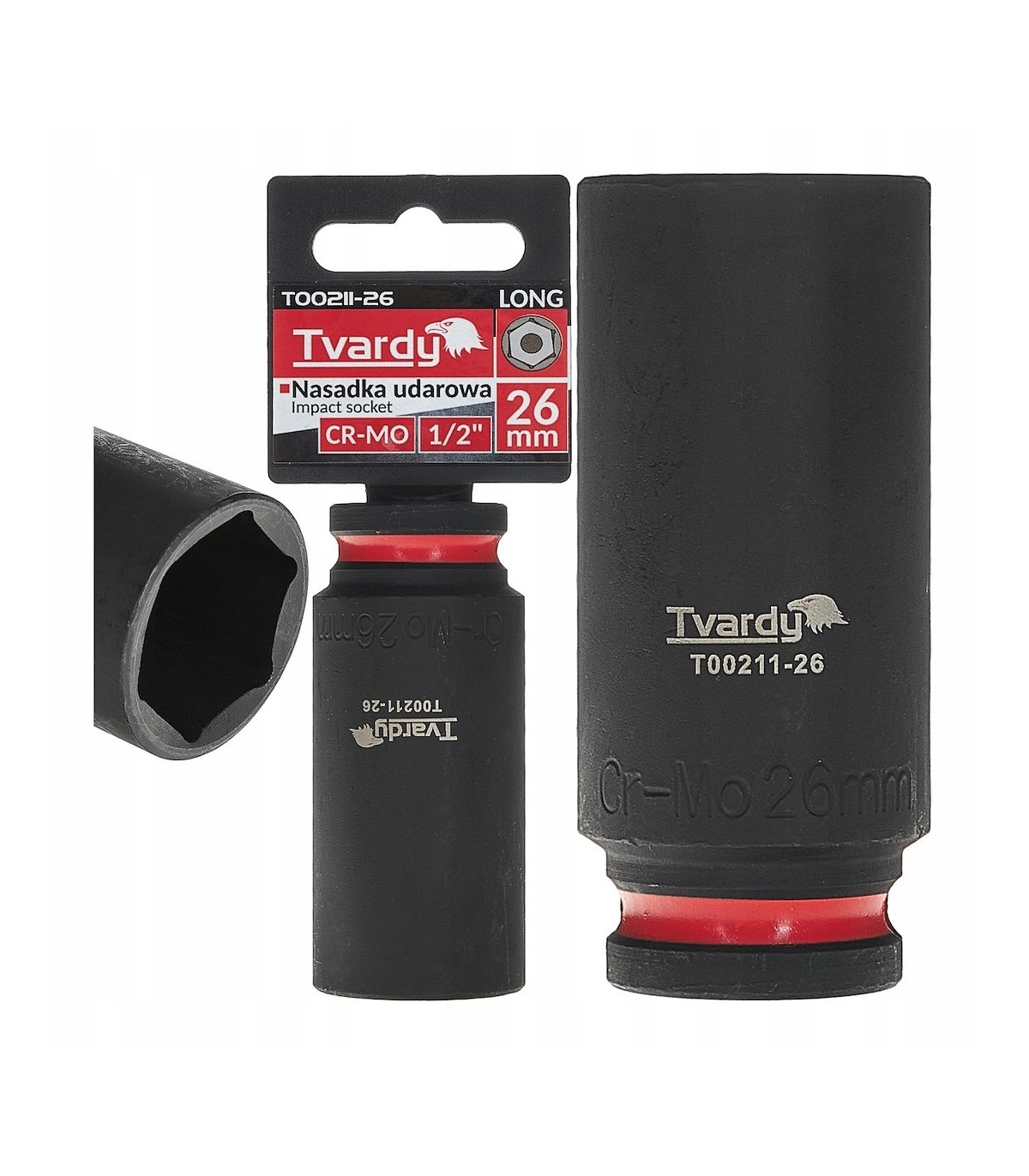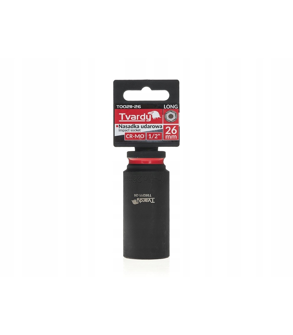 Nasadka udarowa długa 1/2" 26mm TVARDY to niezawodne narzędzie stworzone do pracy w trudnych warunkach. Wykonana z wytrzymałej stali CR-MO, gwarantuje odporność na obciążenia udarowe, długą żywotność i bezpieczeństwo użytkowania.