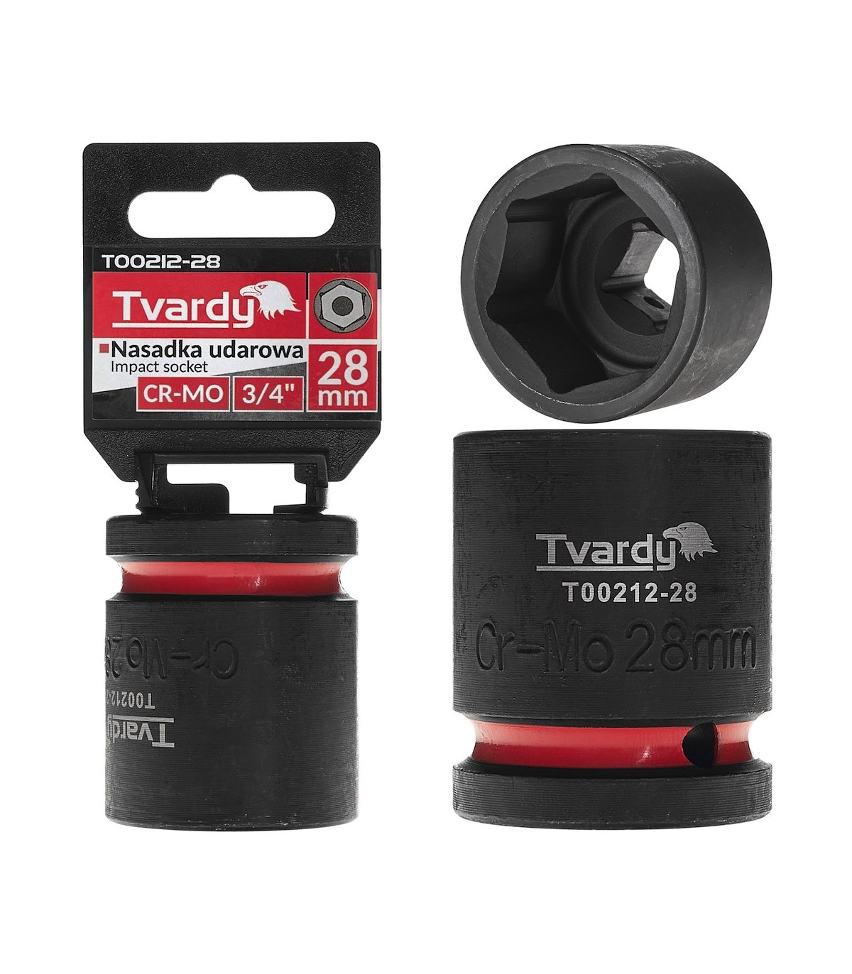 Nasadka udarowa krótka TVARDY 3/4" 28 mm to profesjonalne narzędzie, które nie zawiedzie Cię w najbardziej wymagających warunkach. Wykonana z CR-MO, gwarantuje niezawodność, trwałość i bezpieczeństwo pracy.