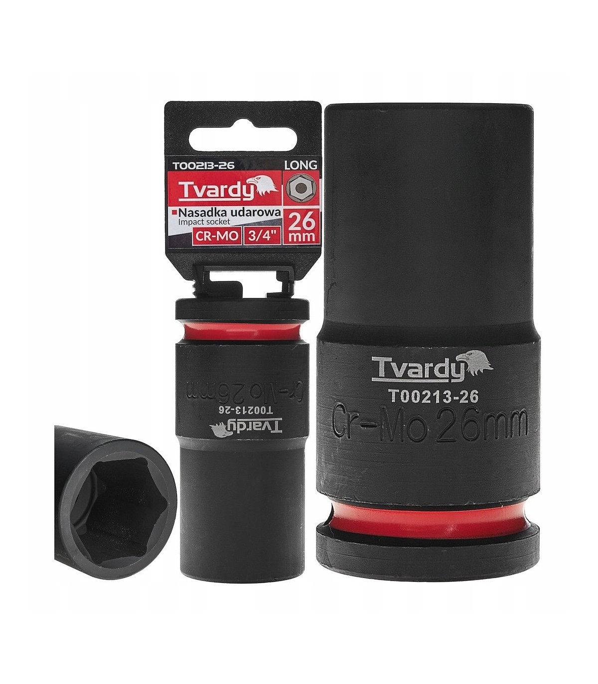 Profesjonalna długa nasadka udarowa marki Tvardy w rozmiarze 26 mm, zaprojektowana z myślą o pracy z kluczami udarowymi w najtrudniejszych warunkach.