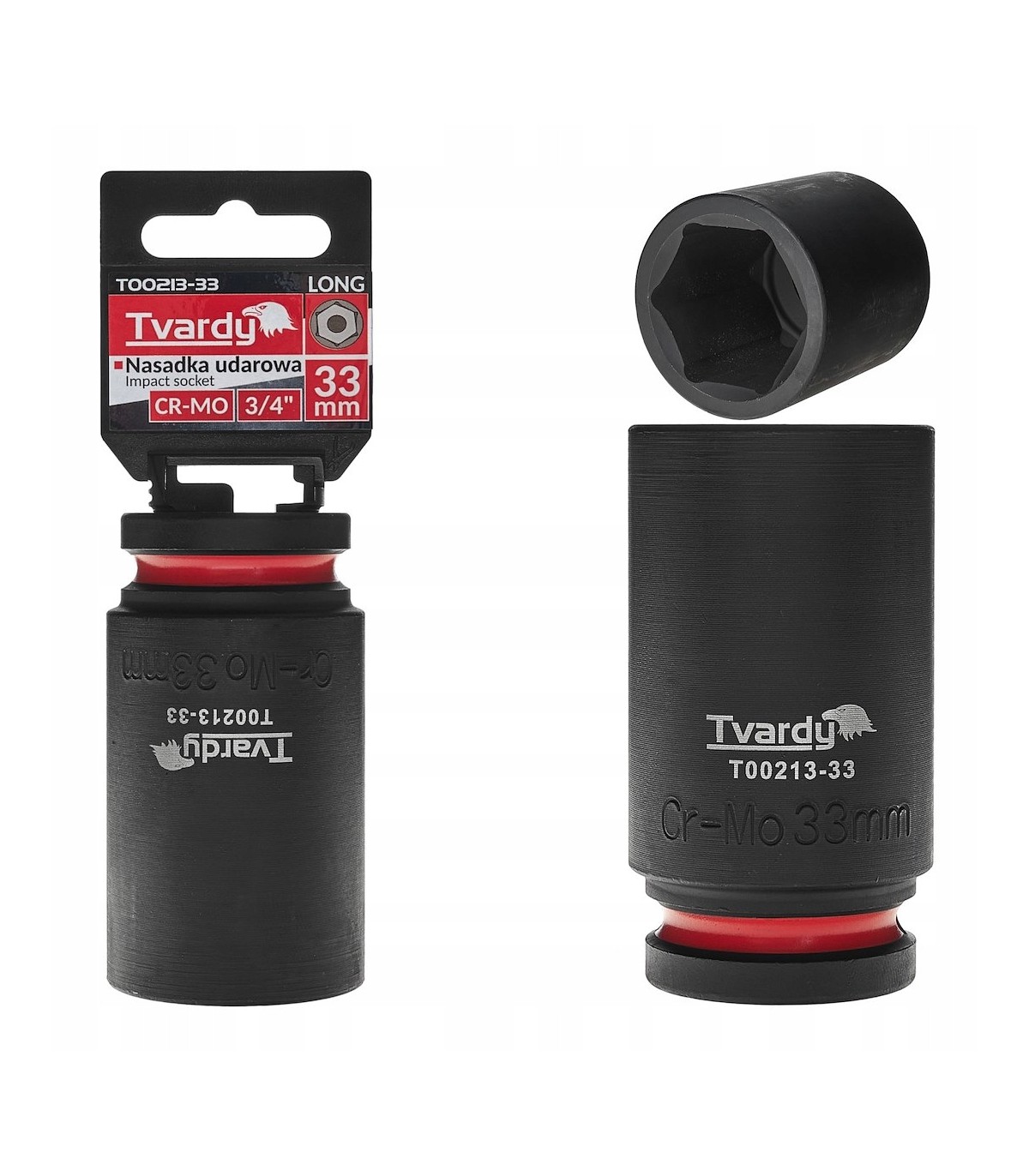 Profesjonalna długa nasadka udarowa marki Tvardy w rozmiarze 33 mm, zaprojektowana specjalnie do pracy z narzędziami udarowymi.