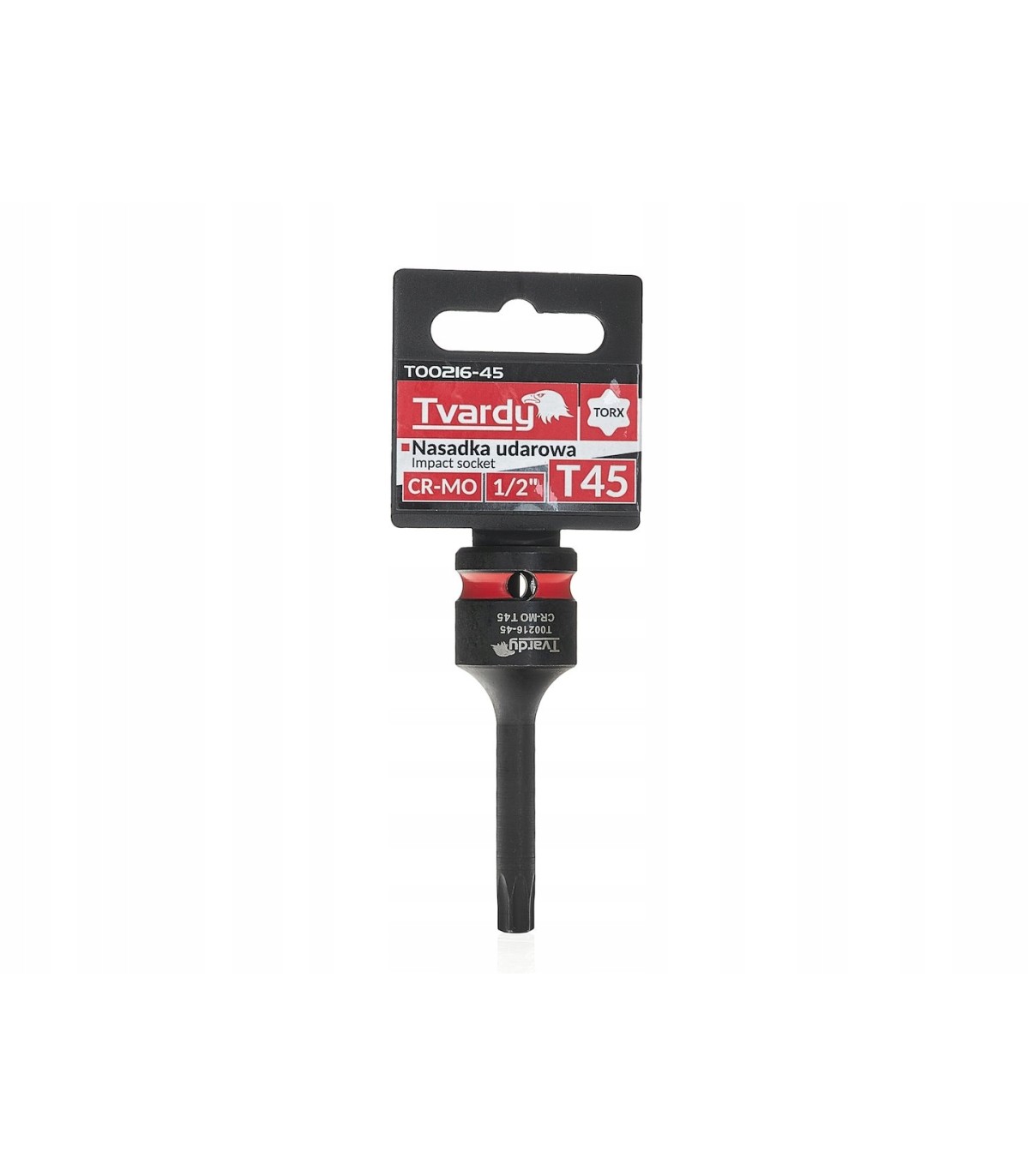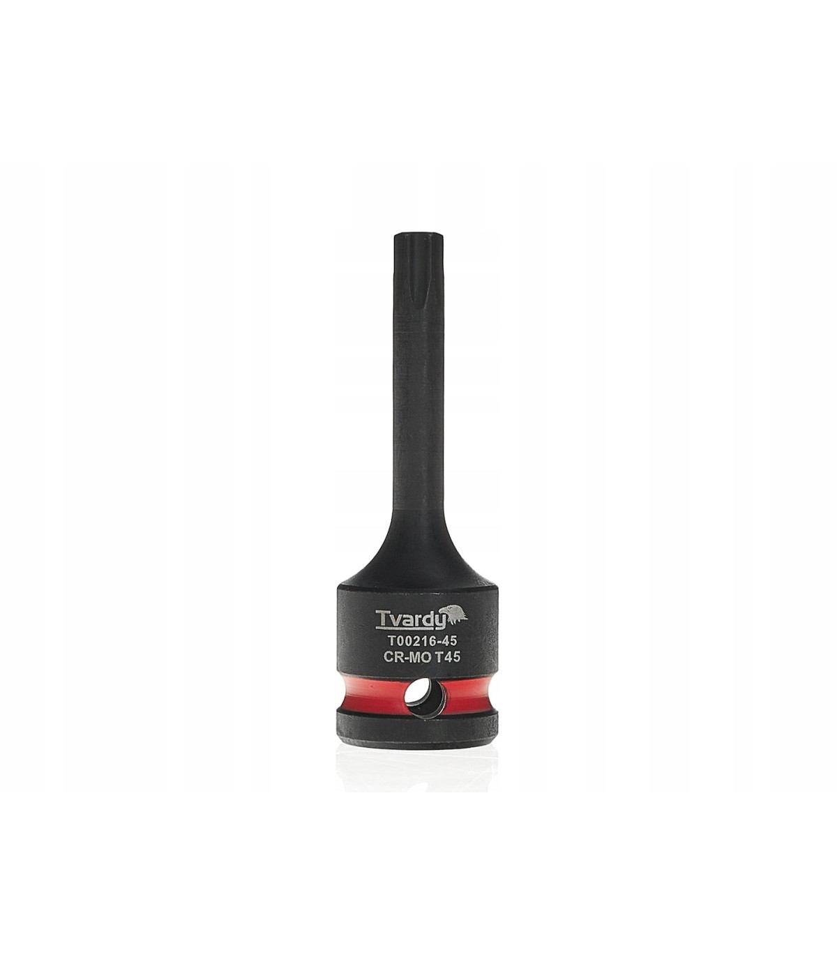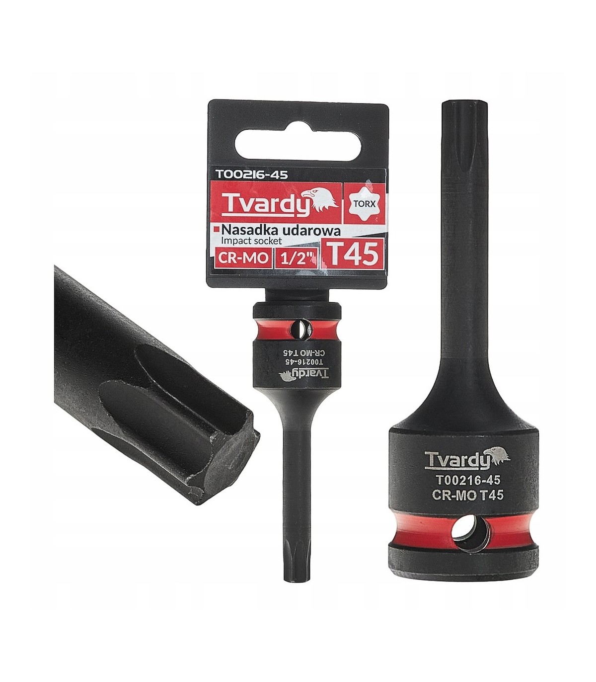 Profesjonalna nasadka udarowa TORX T45 marki Tvardy, zaprojektowana z myślą o intensywnej pracy z kluczami udarowymi. To niezastąpione narzędzie w serwisach samochodowych, przemyśle ciężkim oraz podczas montażu konstrukcji stalowych i maszyn, gdzie stosuje się połączenia śrubowe z gniazdem typu TORX.