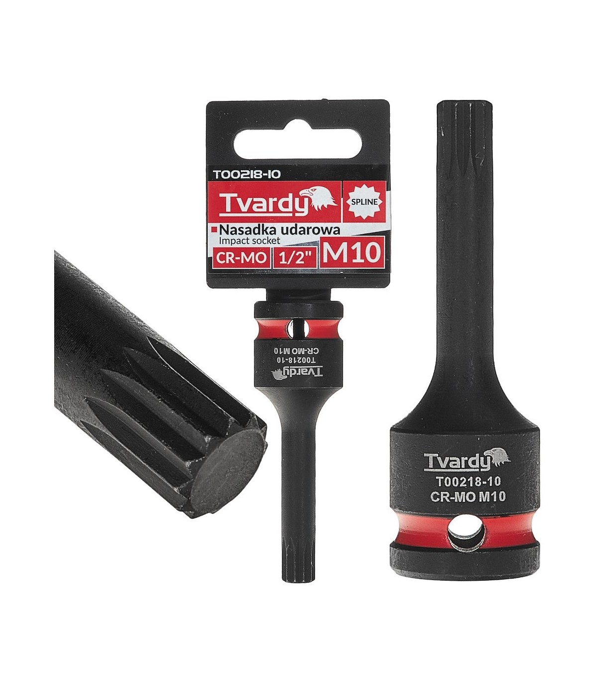 Profesjonalna nasadka udarowa SPLINE M10 marki Tvardy to narzędzie stworzone dla profesjonalistów i wymagających użytkowników. Wykonana z wysokogatunkowej stali CR-MO (chromowo-molibdenowej), zapewnia maksymalną odporność na przeciążenia i niezawodność podczas pracy z kluczami udarowymi.