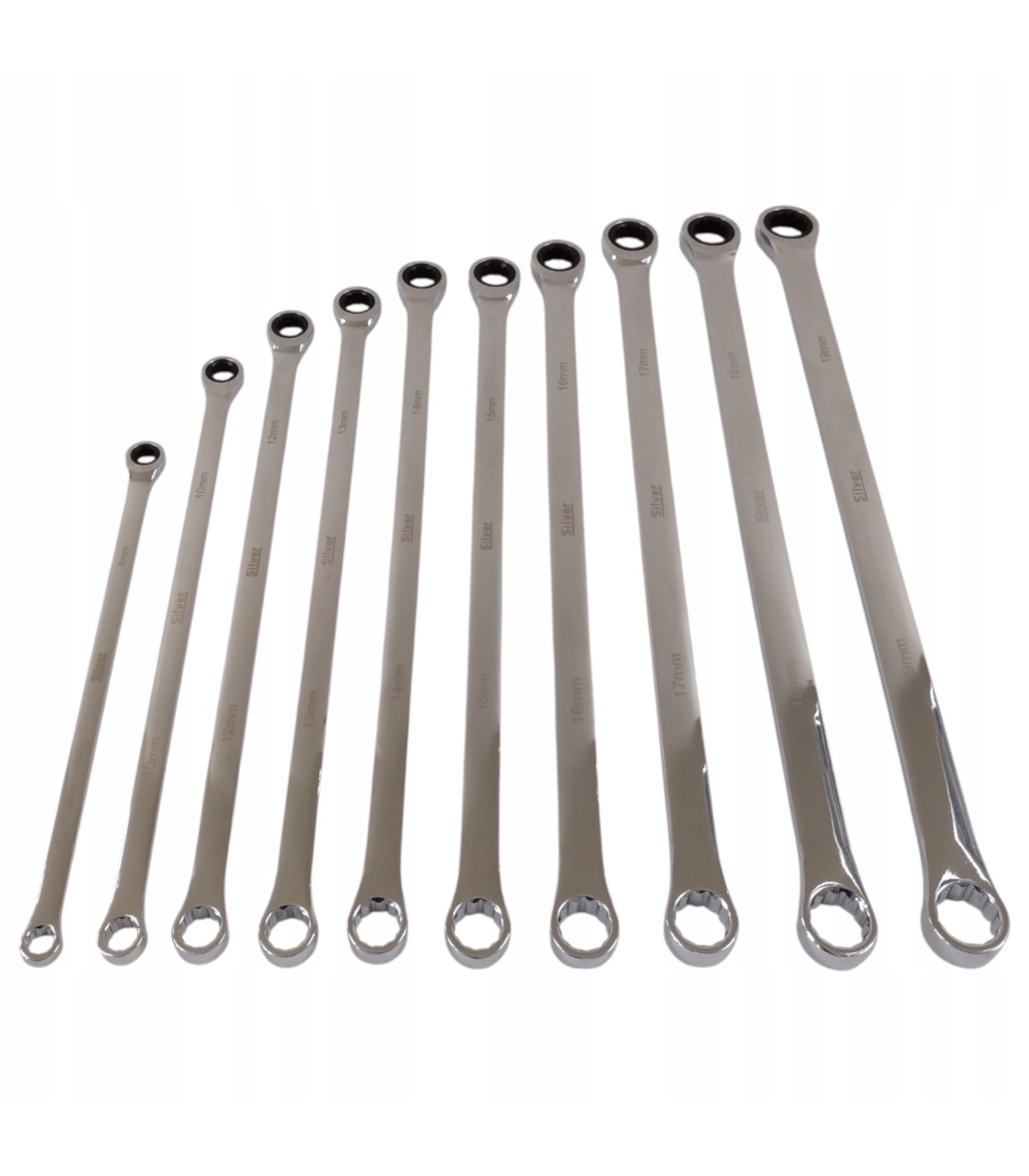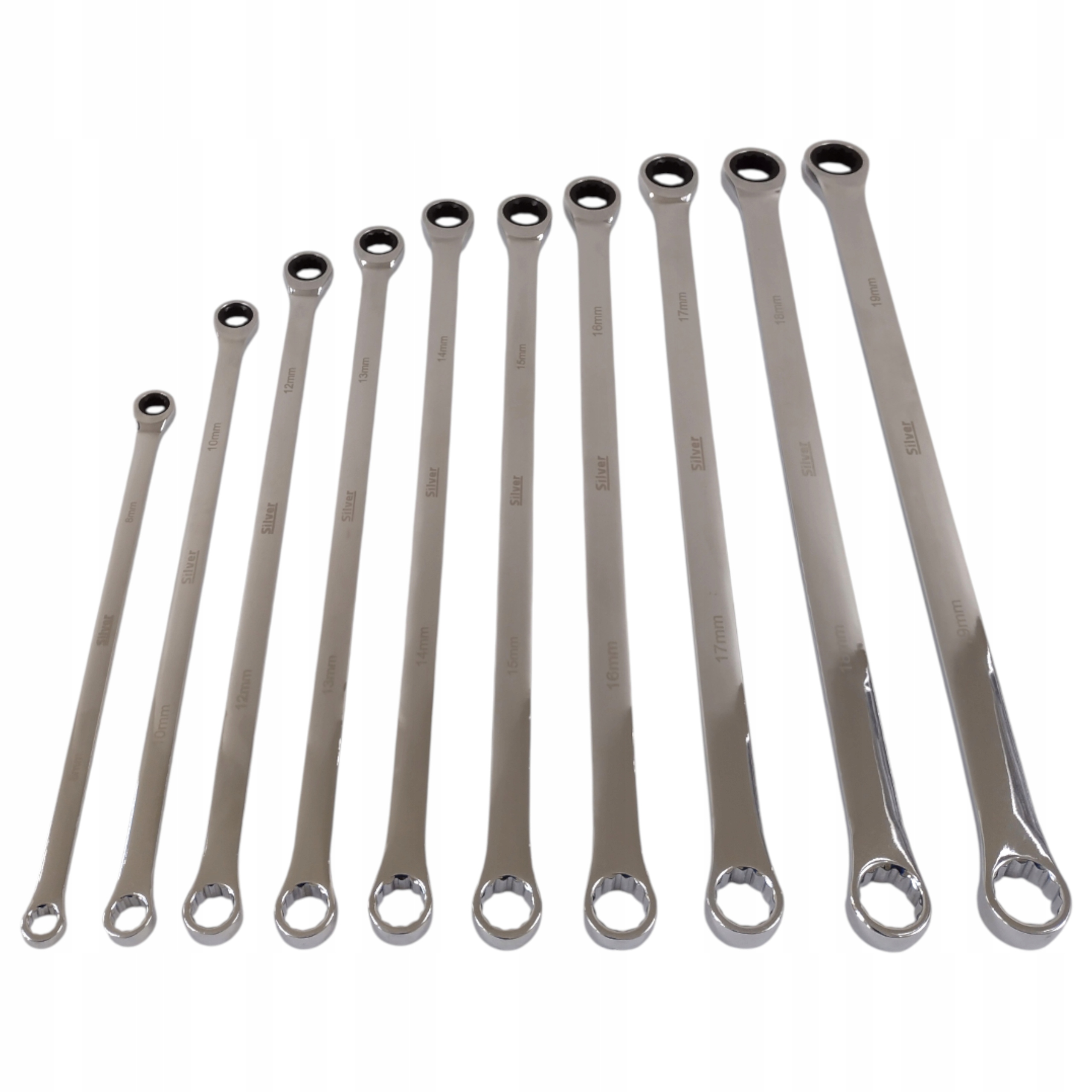 ⭐ Zestaw długich kluczy oczkowych prostych z grzechotką to niezastąpione narzędzie w każdym warsztacie, garażu czy serwisie. Wykonane z wysokiej jakości stali chromowo-wanadowej (Cr-V), gwarantują trwałość, odporność na korozję i pewną pracę nawet przy dużych obciążeniach.