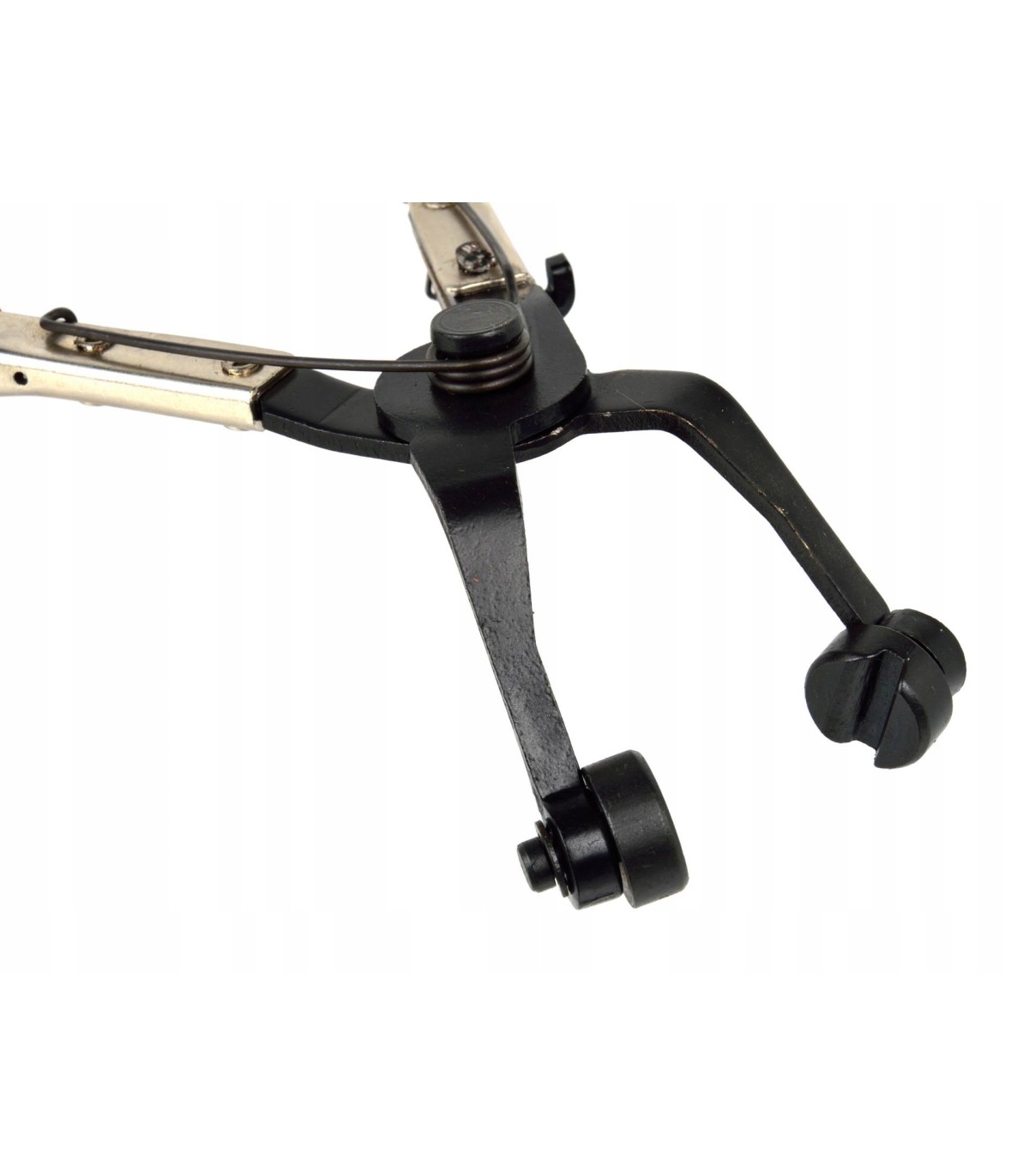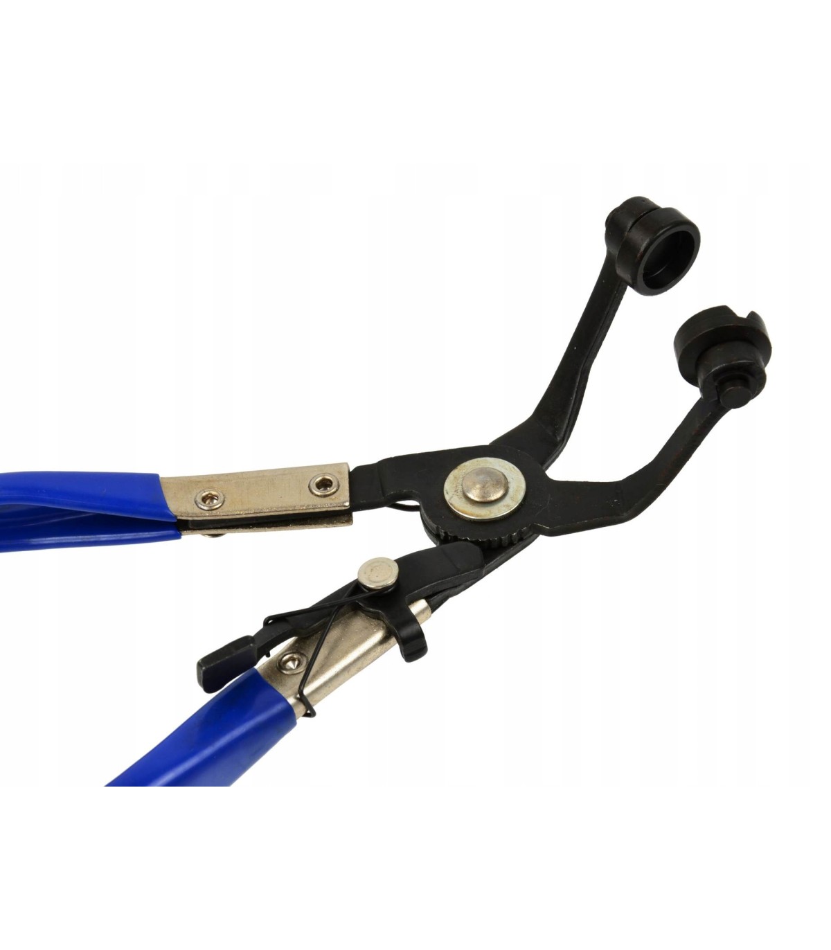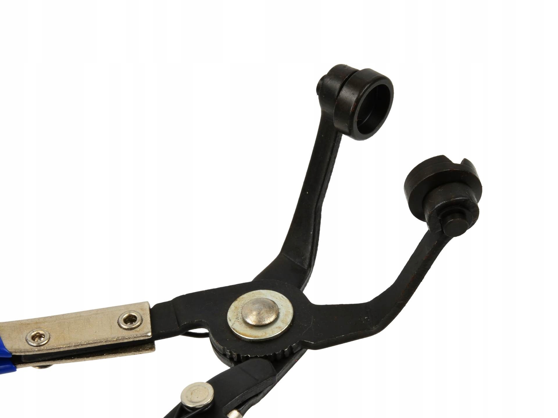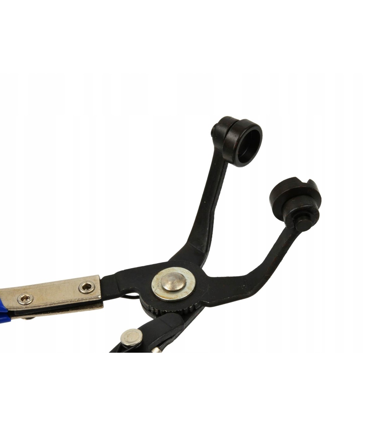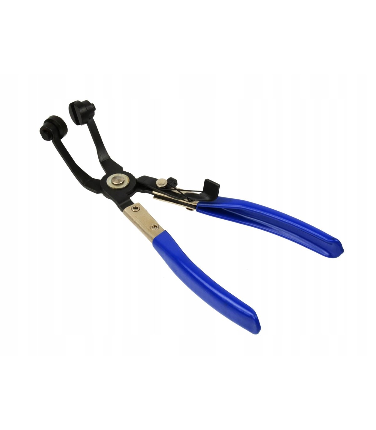 ⭐ Szczypce wygięte do opasek taśmowych. Szczypce służą do ściskania opasek rozprężnych stosowanych na przewodach elastycznych paliwowych, olejowych oraz wodnych. Specjalnie zagięte szczęki pozwalają na uchwycenie opaski w trudno dostępnych miejscach. Posiadają 8-stopniowy mechanizm blokujący je automatycznie w położeniu zamkniętym.