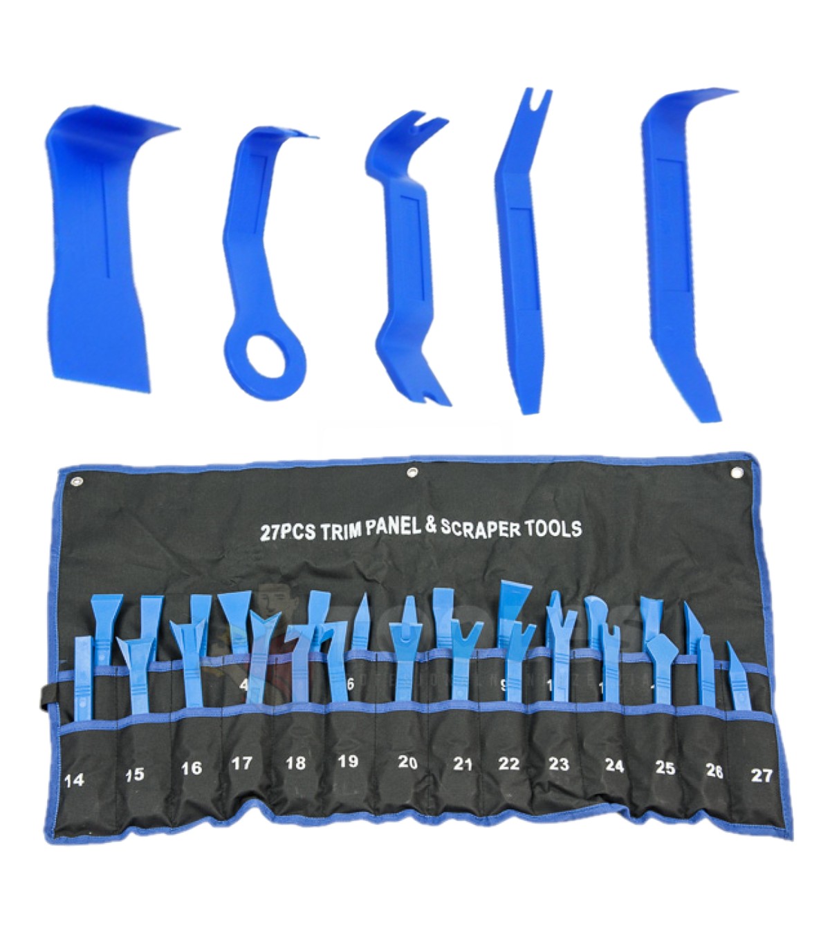 ✅ Zestaw specjalistycznych ściągaczy do demontażu tapicerki i listew samochodowych. Ściągacze wykonane są z utwardzonego nylonu oraz posiadają specjalne profile umożliwiające użycie dźwigni przy demontażu spinek tapicerskich.