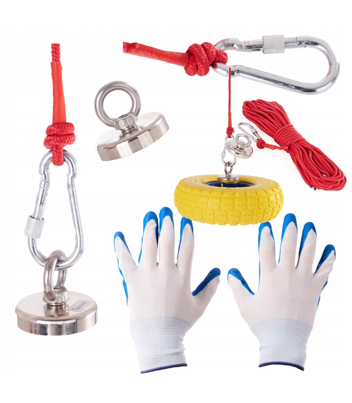 ⭐ Magnes neodymowy 85kg z uchwytem górnym, w zestawie z 20m liną, karabińczykiem oraz rękawicami. Tego typu magnesy z powodzeniem wykorzystywane są to poszukiwań metalowych (metale ferromagnetyczne) przedmiotów w wodzie.