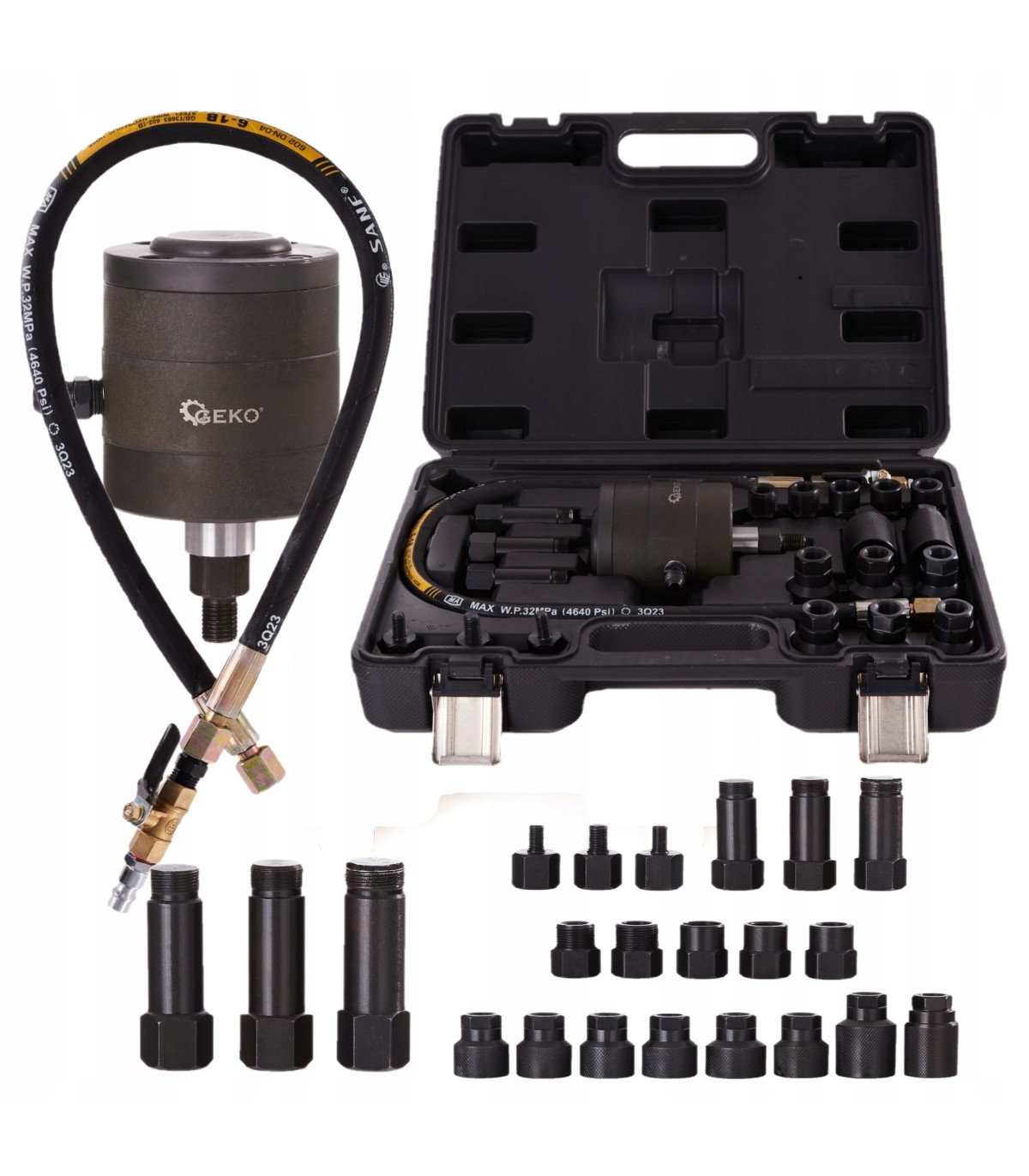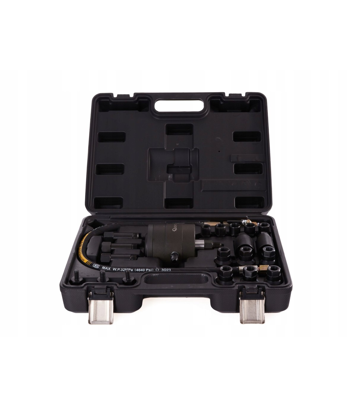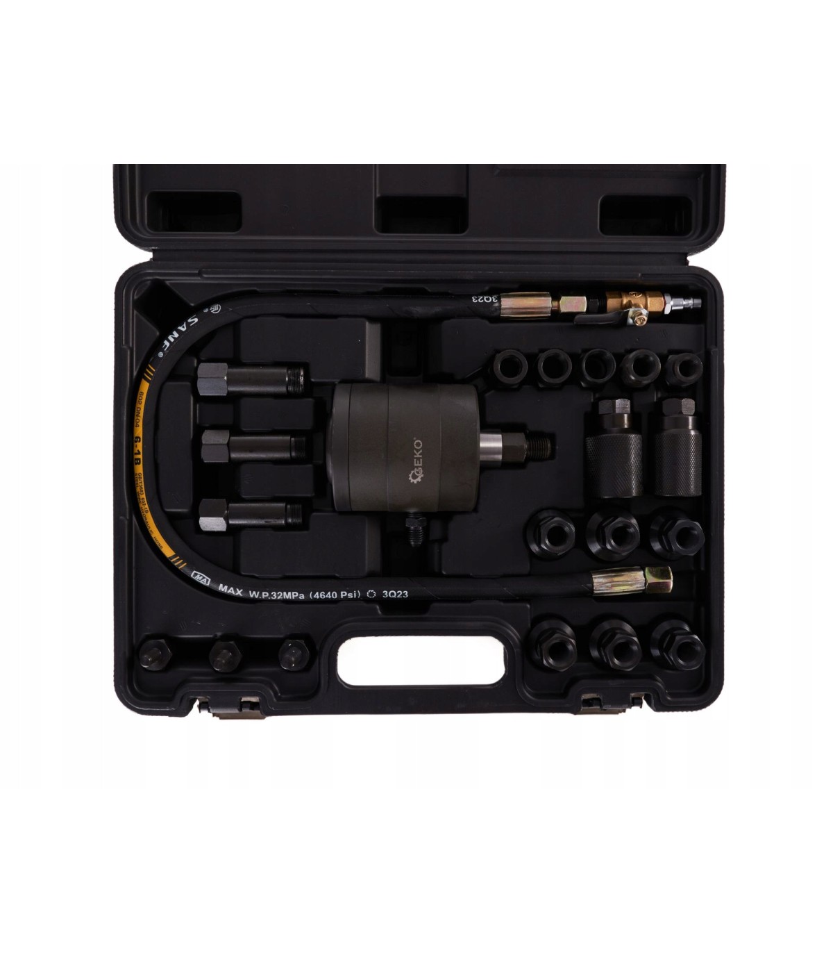 Ściągacz wykorzystuje siłę pneumatyczną do generowania odpowiedniego ciśnienia, co umożliwia bezpieczne i skuteczne wyjęcie wtryskiwacza z głowicy silnika. Dzięki różnorodnym końcówkom i adapterom w zestawie, może być stosowany z wtryskiwaczami różnych producentów (takich jak Bosch, Delphi, Denso, Siemens) oraz różnych modeli pojazdów, co czyni go wszechstronnym narzędziem dla szerokiej gamy zastosowań.