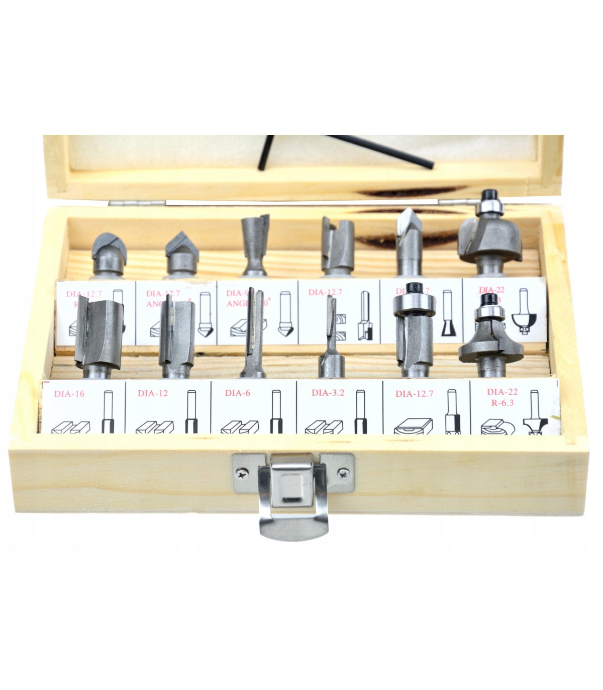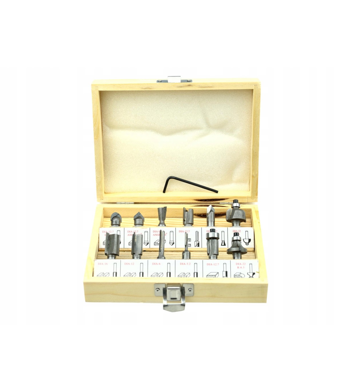 ✅ Zestaw 12 frezów kształtowych do drewna osadzonych na 8mm trzpieniach zapewnia precyzyjną obróbkę materiału z dokładnością do 0,08 mm.