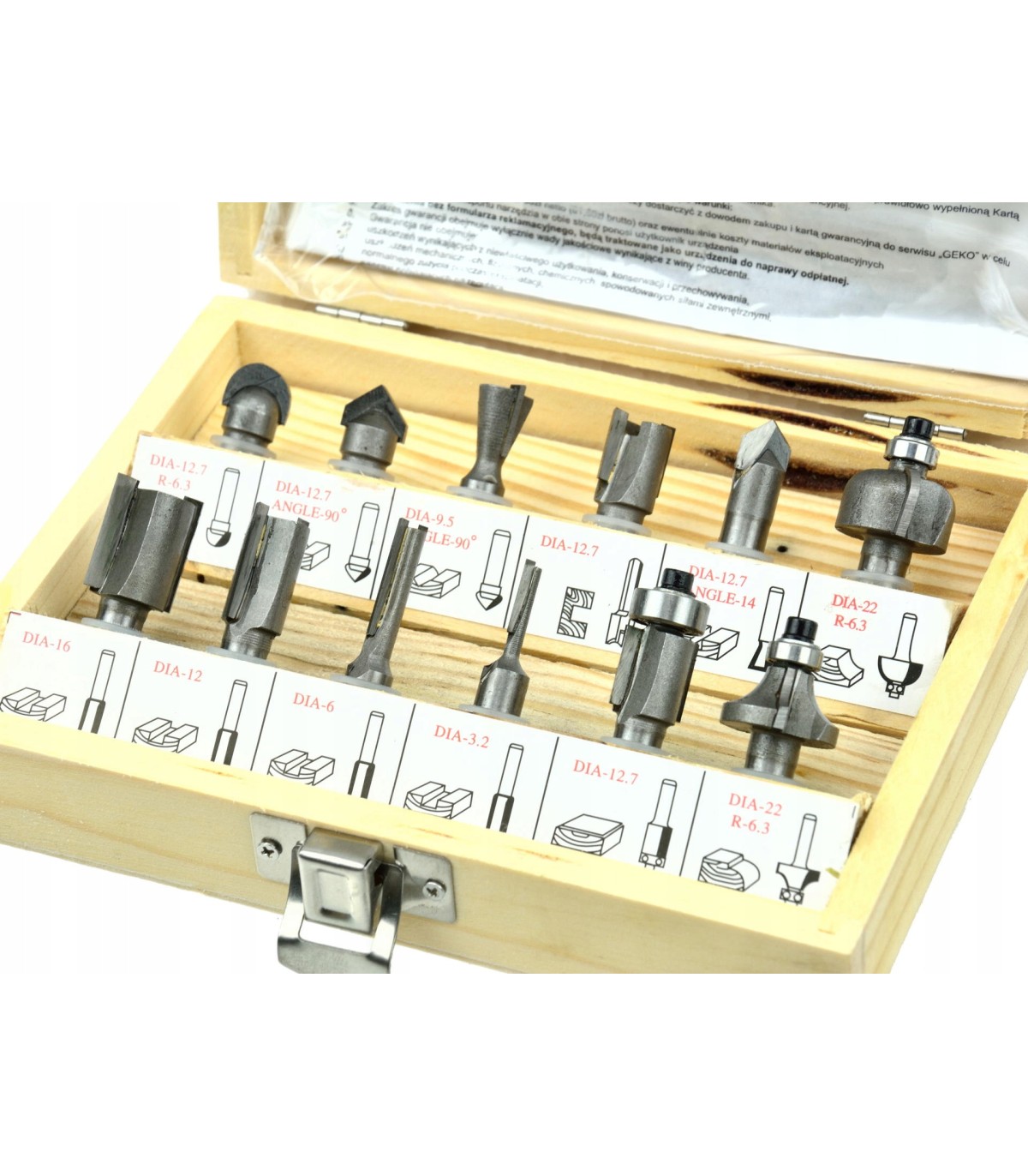 ✅ Całość umieszczono w praktycznej drewnianej walizce, gdzie każdy frez ma swoje podpisane miejsce, co sprawia, że Twoje frezy będą bezpieczne i zawsze na swoim miejscu.