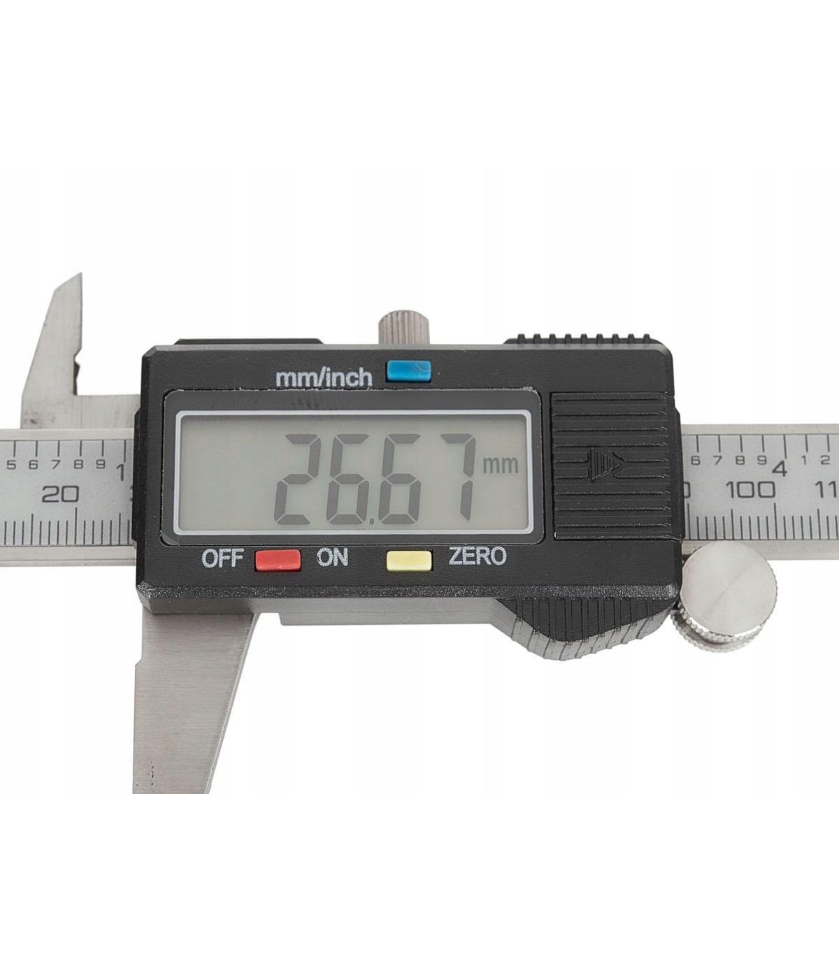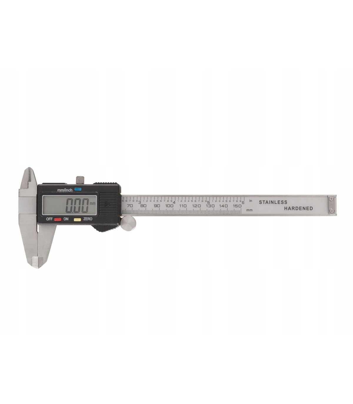 Suwmiarka o długości pomiarowej 150 mm wyposażona została w czytelny wyświetlacz LCD.