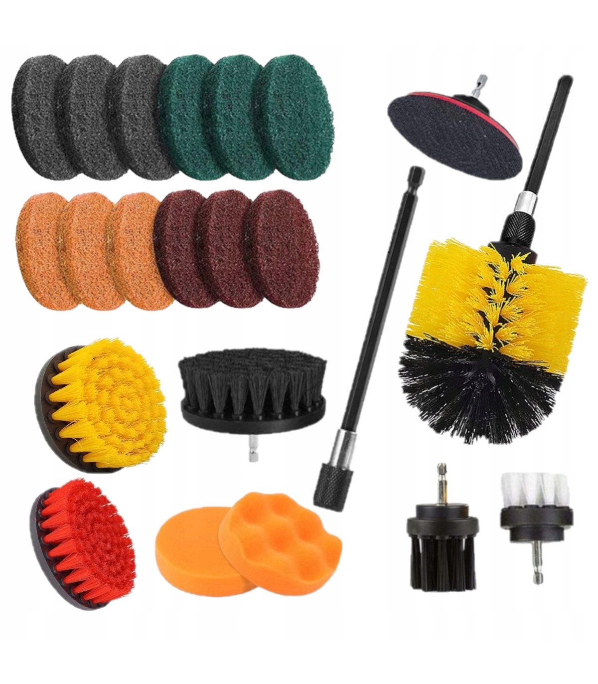 ✅ Zestaw szczotek i padów do czyszczenia to kompletny zestaw, który sprawi, że czyszczenie stanie się łatwe, skuteczne i przyjemne. W skład tego zestawu wchodzi: