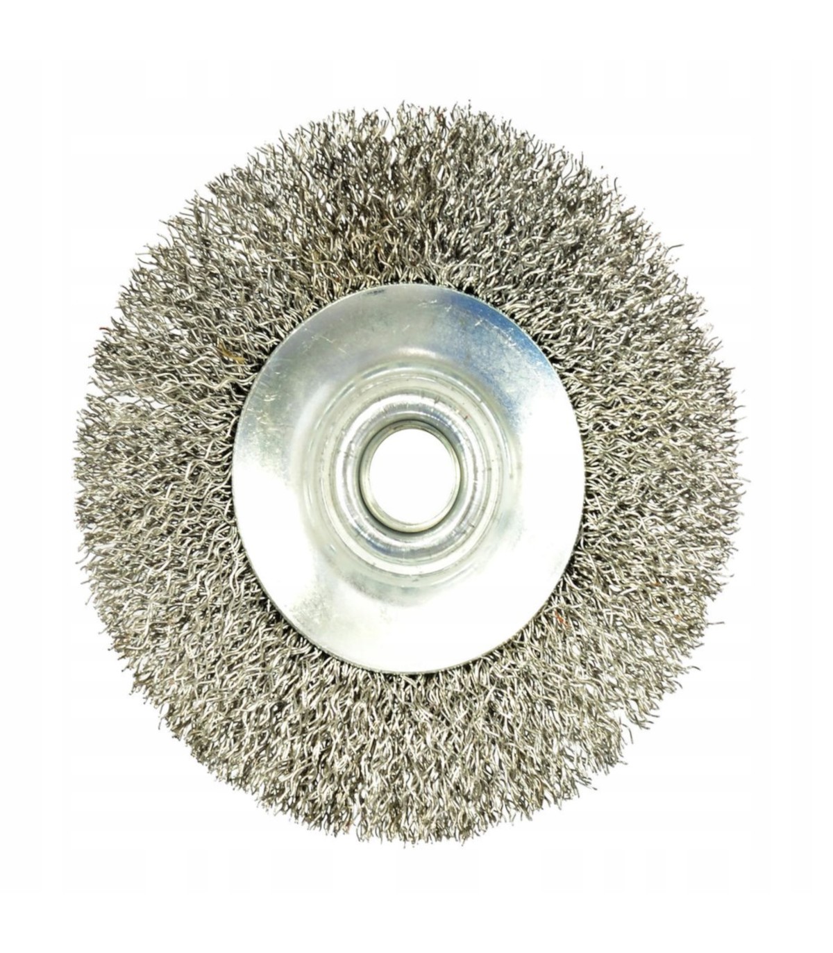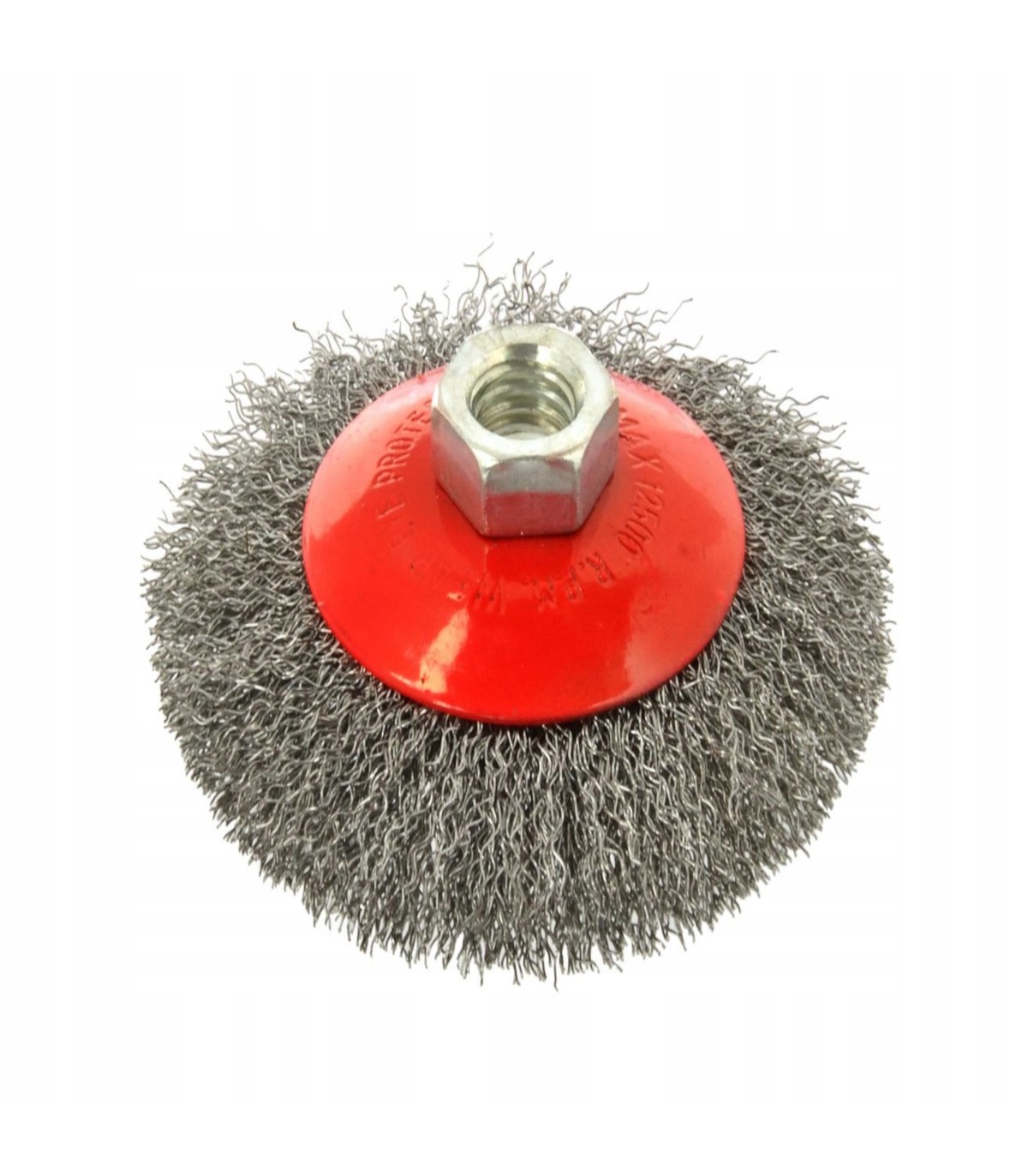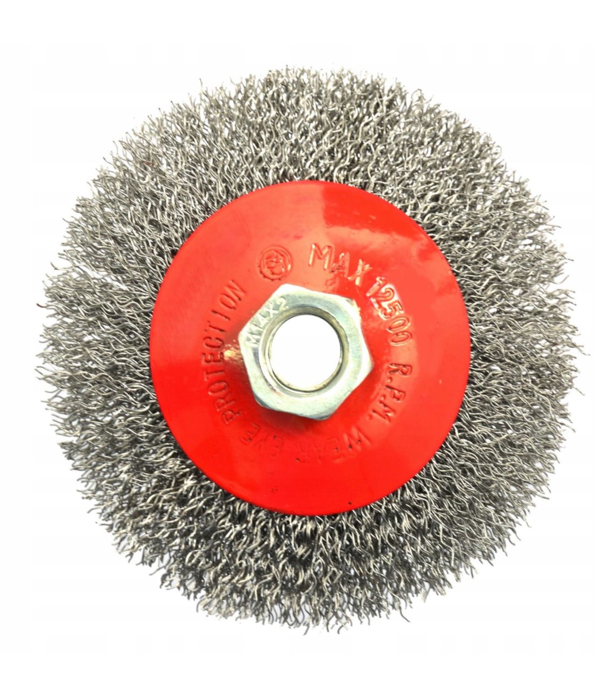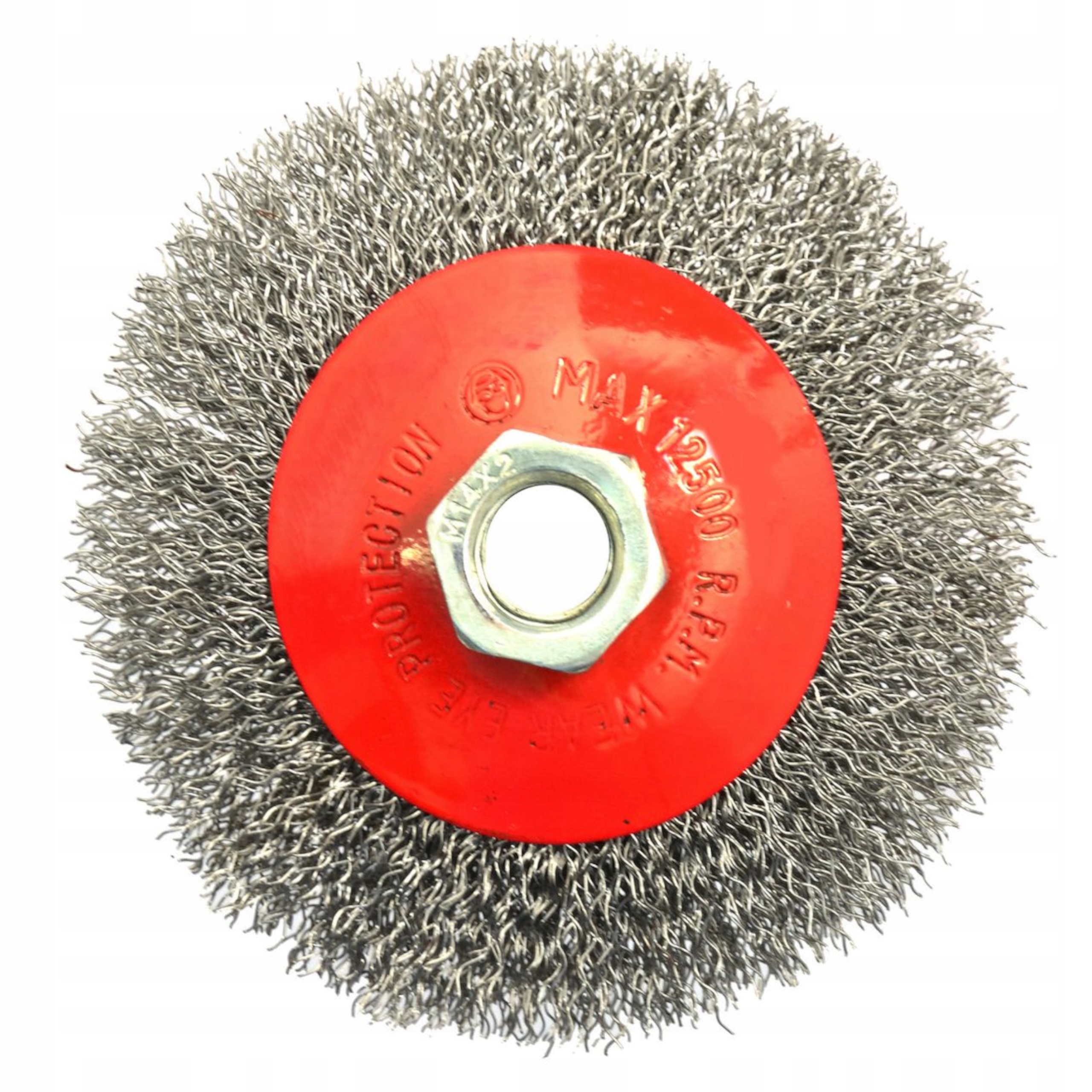 SZCZOTKA DRUCIANA OBROTOWA BOCZNA 100mm GWINT M14 DRUT KARBOWANY STALOWY