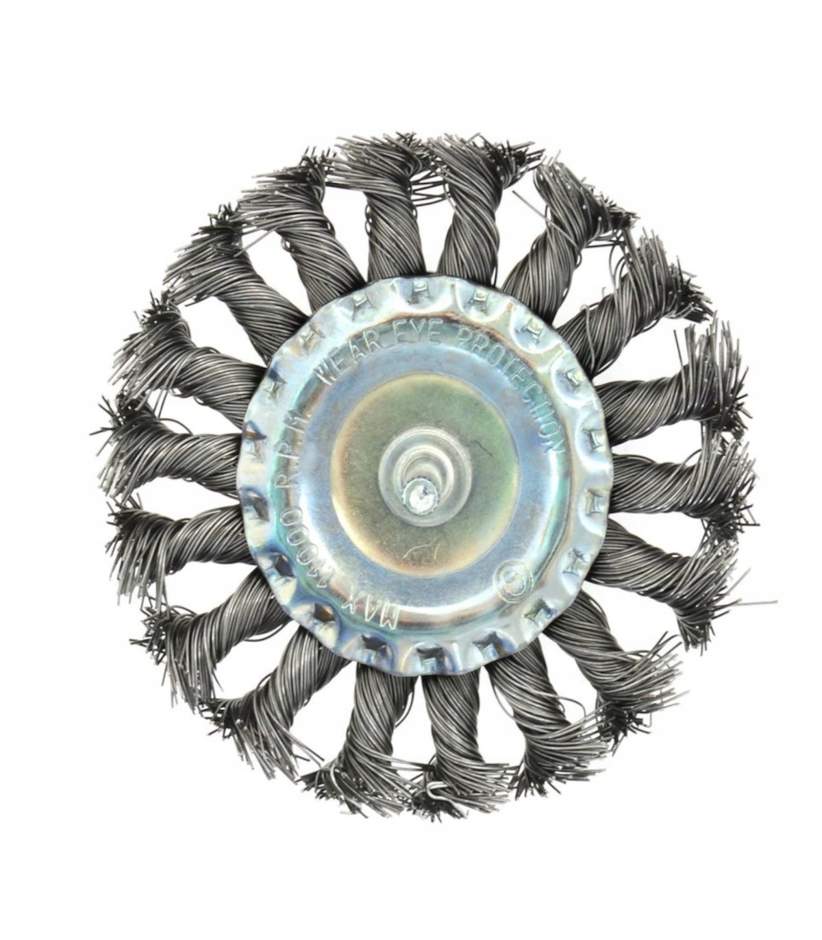 ⭐ Szczotka tarczowa pleciona wykonana z wysokiej jakości hartowanego drutu stalowego to niezastąpione narzędzie w pracach renowacyjnych i czyszczeniu powierzchni metalowych. Idealna do usuwania rdzy, starych powłok farb i lakierów oraz zadziorów.