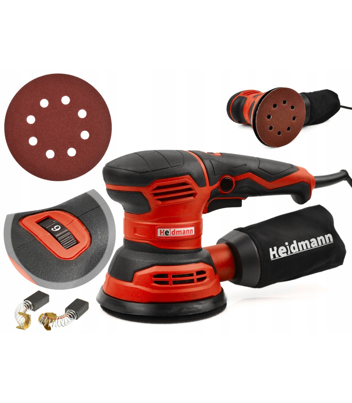 Aby ułatwić precyzję szlifowania gumowany autonomiczny uchwyt został odpowiednio wyważony w stosunku do osi głowicy mimośrodowej umożliwiając idealny prostopadły docisk do powierzchni.