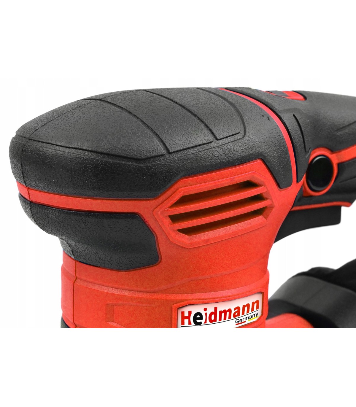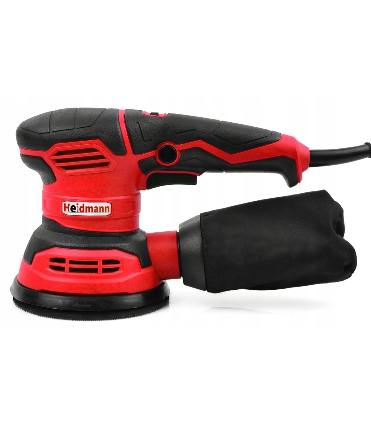 Dla maksymalnego komfortu i bezpieczeństwa użytkowania, szlifierka została wyposażona w specjalny antypoślizgowy uchwyt pokryty gumą. Ruch mimośrodowy zapewnia równomierne ścieranie obrabianego materiału, bez bruzd i nierówności.
