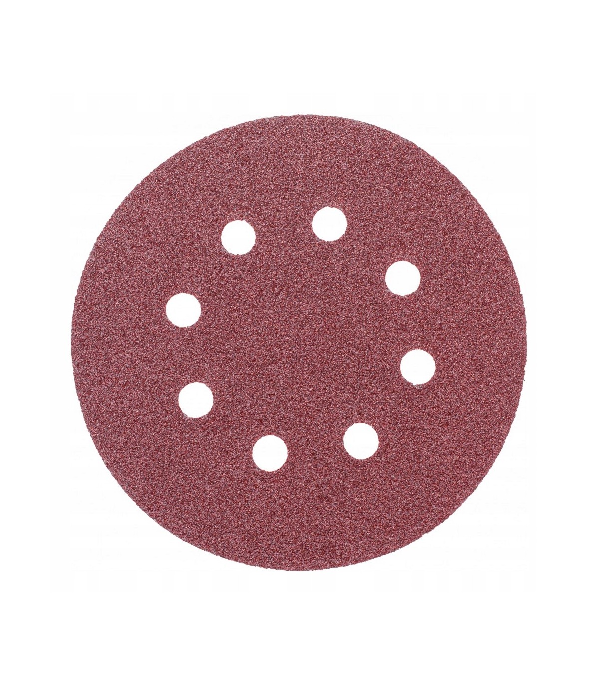 Urządzenie współpracuje z materiałem ściernym o średnicy 125mm z mocowaniem na rzep oraz ośmioma otworami odpylającymi.