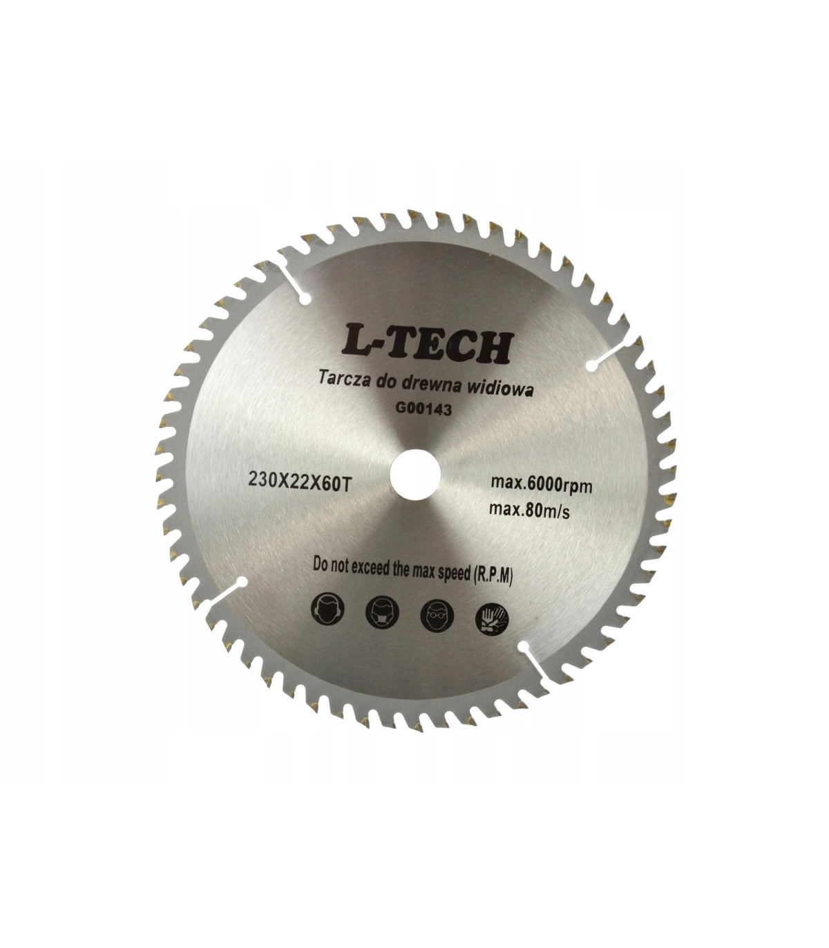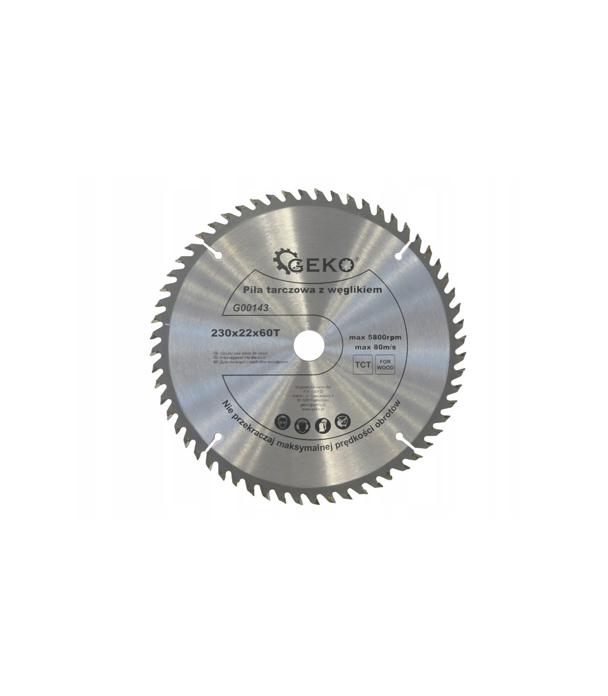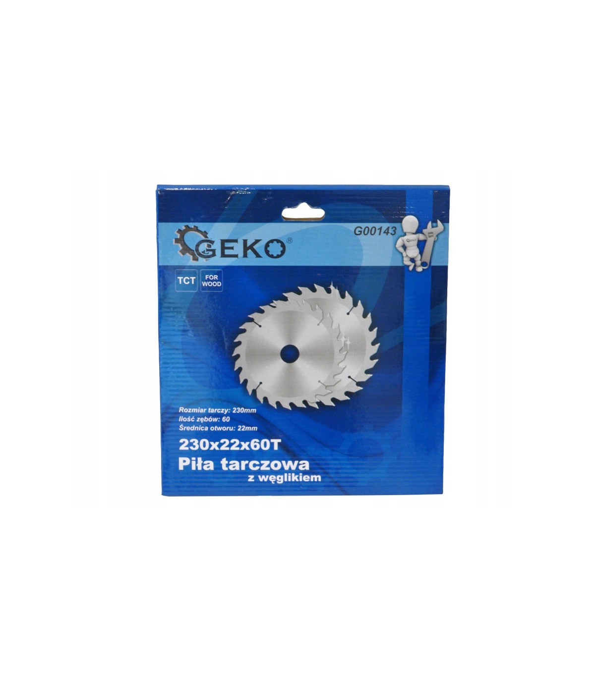 Tarcza tnąca do drewna z widią marki Geko, o wymiarach 230x22 mm z 60 zębami tnącymi.
