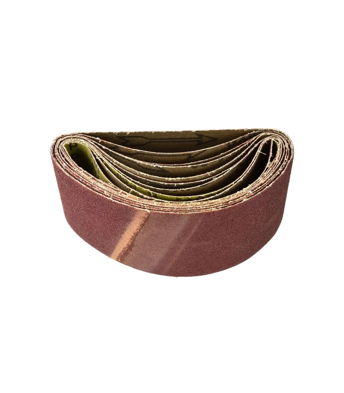 Bezkońcowy pas ścierny z materiałem ścierającym w postaci węglika krzemu wiązanego żywicą syntetyczną osadzonego na podkładzie z włókien bawełny.