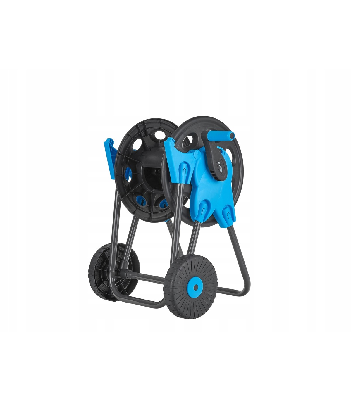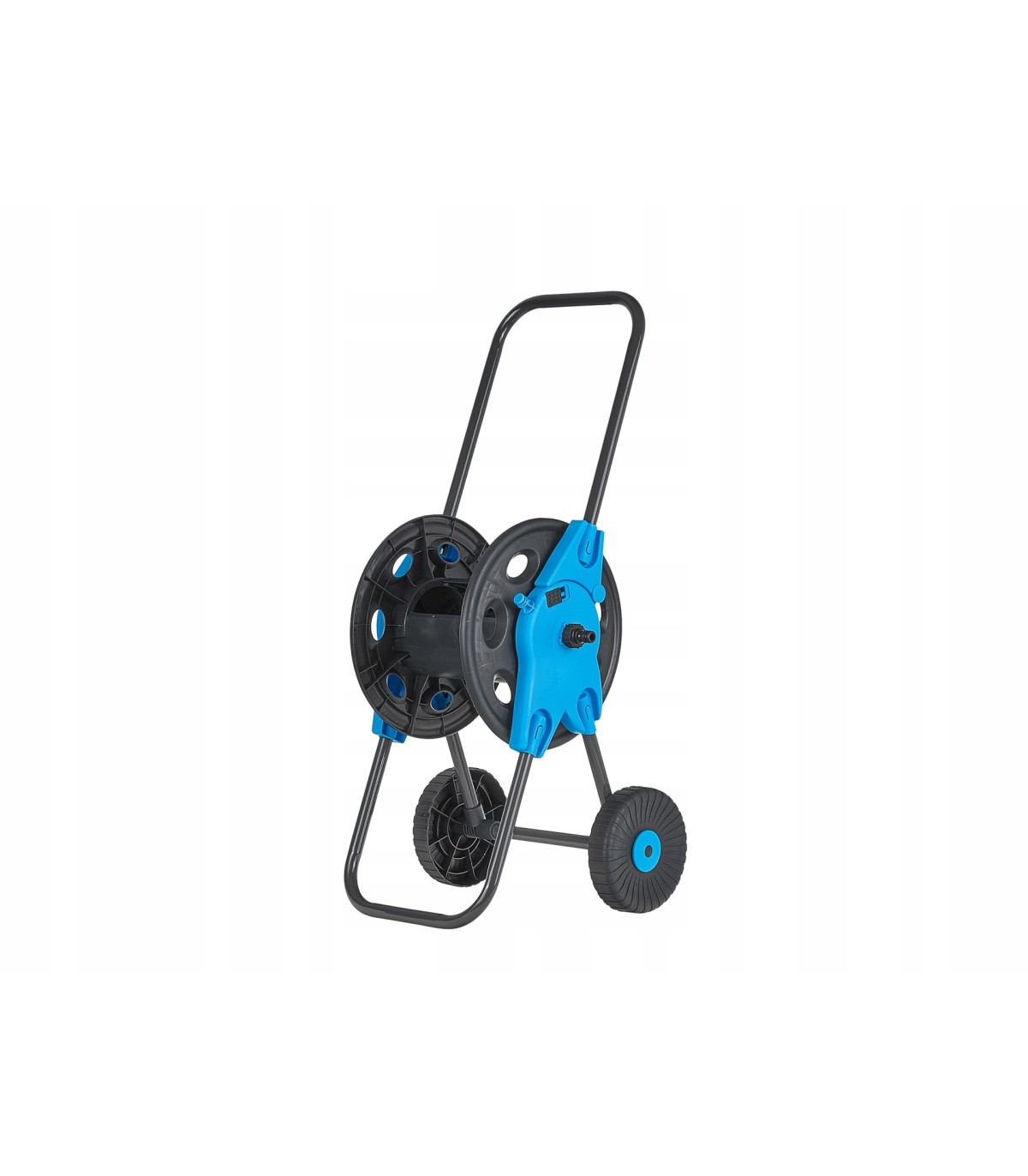 Wózek umożliwia łatwe i równomierne nawijanie węża, eliminując problem jego splątywania. Ręczna korba pozwala na szybkie i sprawne zwijanie oraz rozwijanie węża, co znacznie ułatwia codzienną pielęgnację ogrodu.