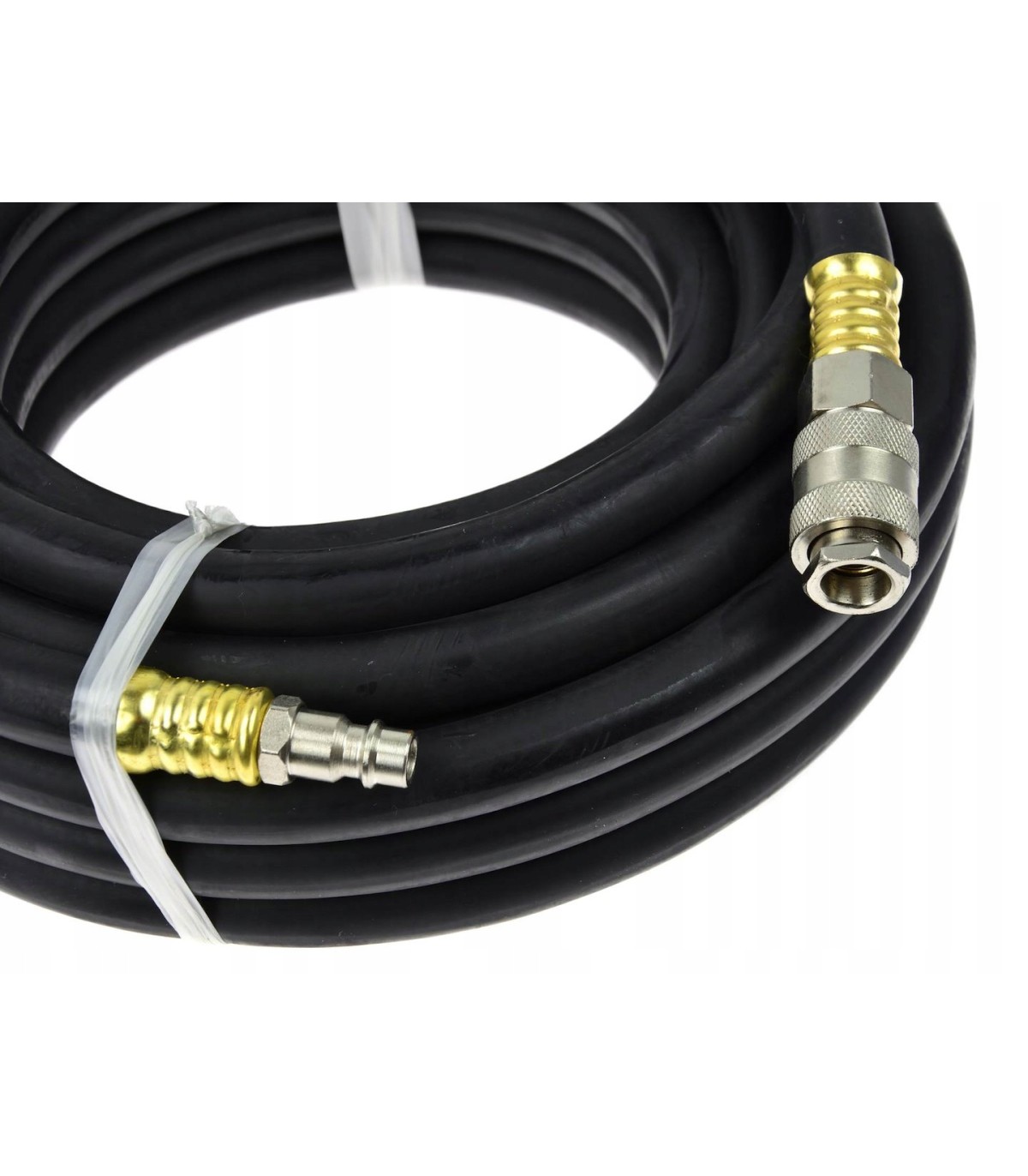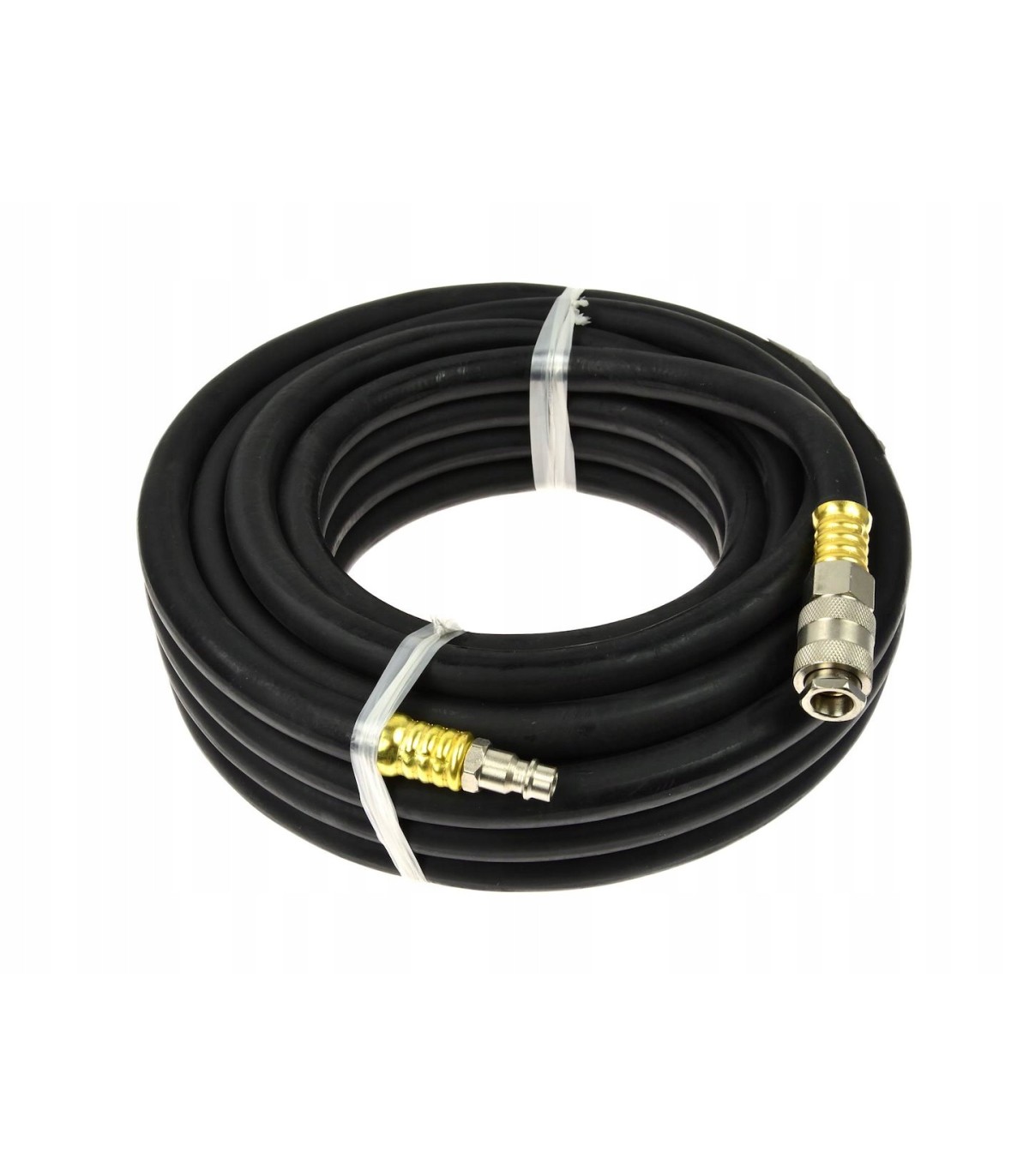 Profesjonalny pneumatyczny przewód gumowy o długości 10 metrów. Wykonany z wysokiej jakości gumy odpornej na olej i ścieranie. Elastyczna konstrukcja zapobiega trwałym odkształceniom. Wąż gotowy do pracy – wyposażony w szybkozłącze i wtyczkę 1/4".