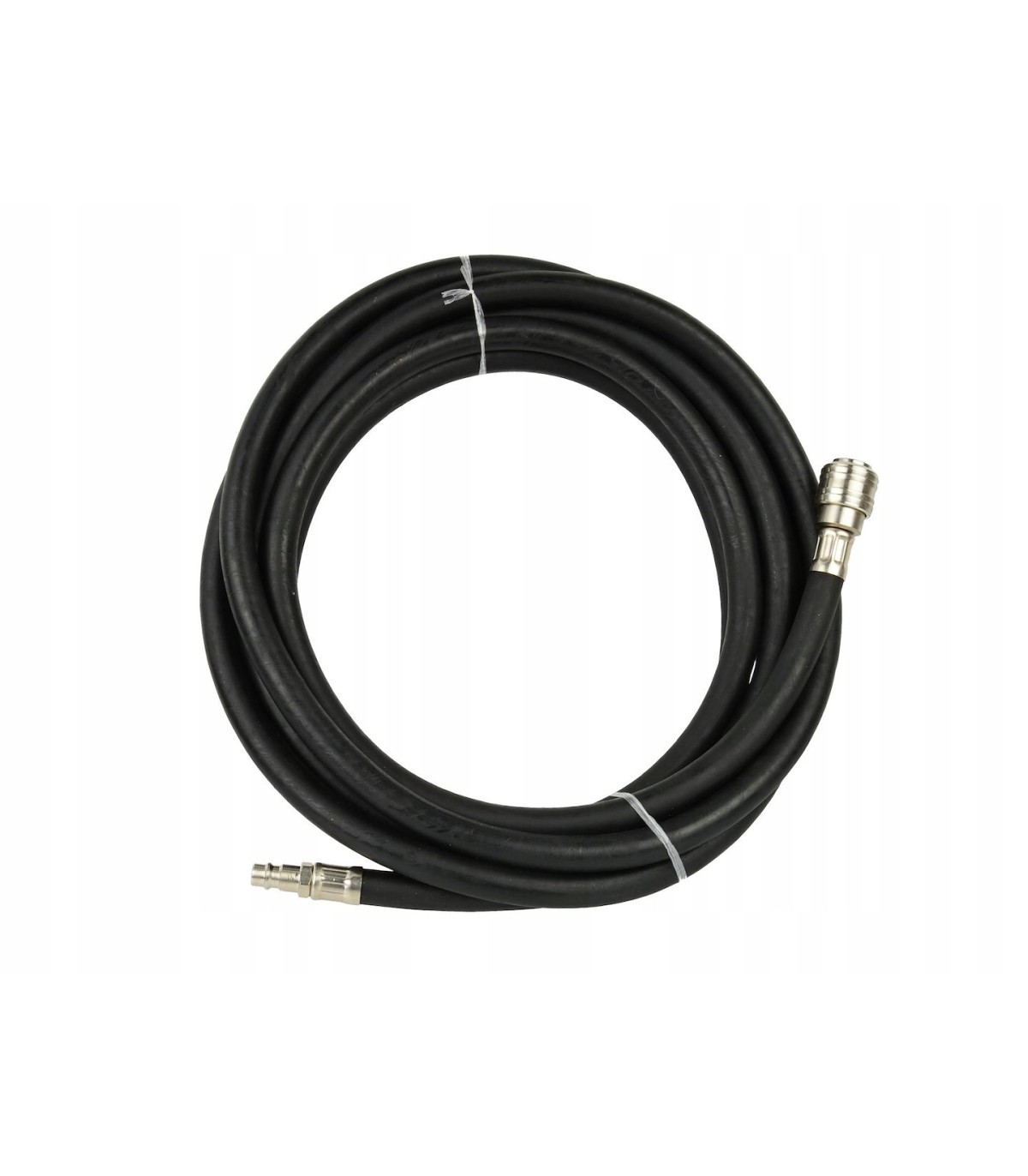 Profesjonalny pneumatyczny przewód gumowy o długości 5 metrów. Wykonany z wysokiej jakości gumy odpornej na olej i ścieranie. Elastyczna konstrukcja zapobiega trwałym odkształceniom. Wąż gotowy do pracy – wyposażony w szybkozłącze i wtyczkę 1/4".