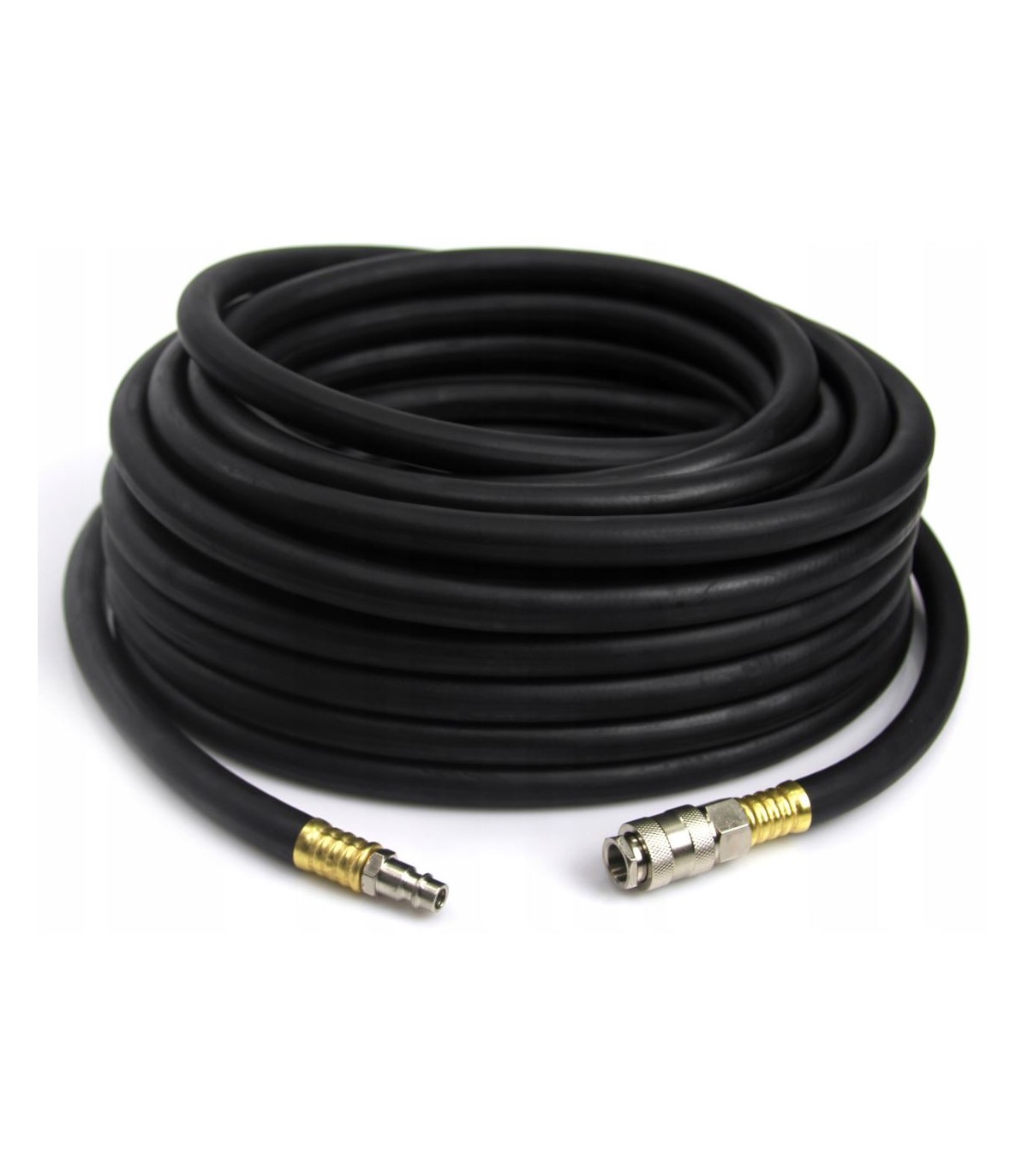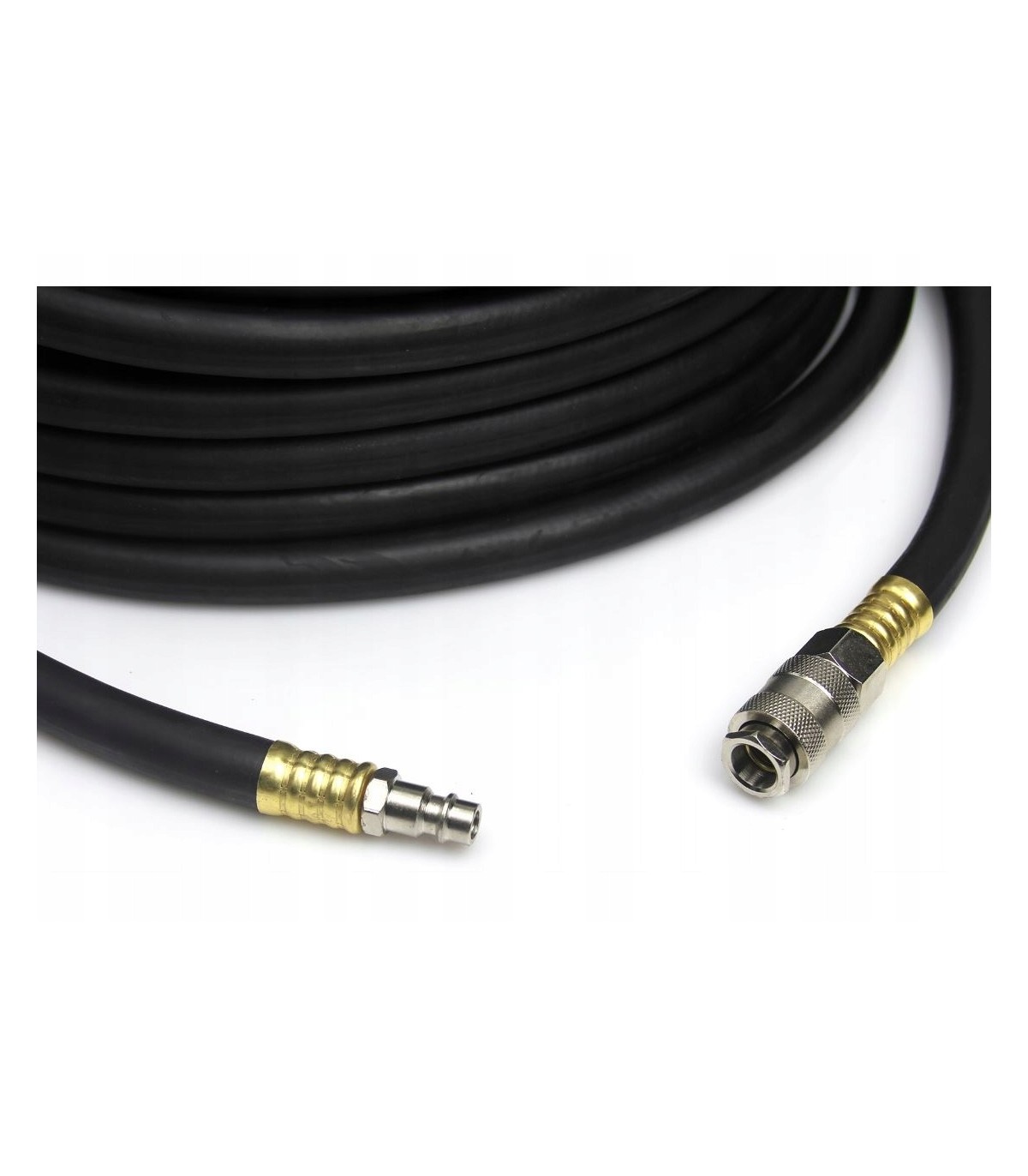 Profesjonalny wąż pneumatyczny gumowy służący do zasilania wszelkiego rodzaju narzędzi pneumatycznych w tym szlifierek, pistoletów lakierniczych, młotków pneumatycznych, podnośników pneumatycznych, itp. Z łatwością można nawinąć go na bęben, czego nie można zrobić w przypadku węży spiralnych. Wąż wykonany jest z elastycznej, wysokogatunkowej gumy odpornej na olej co sprawia, że jest niezastąpiony w warsztatach samochodowych.