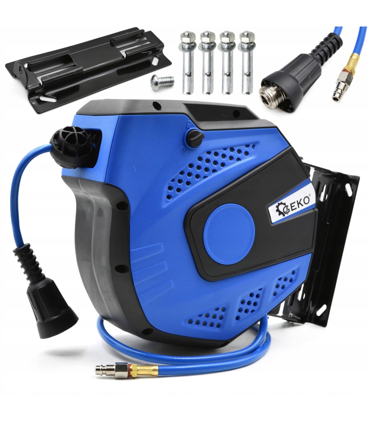 Wysokiej jakości wąż pneumatyczny na zwijaku renomowanej marki narzędziowej GEKO.
