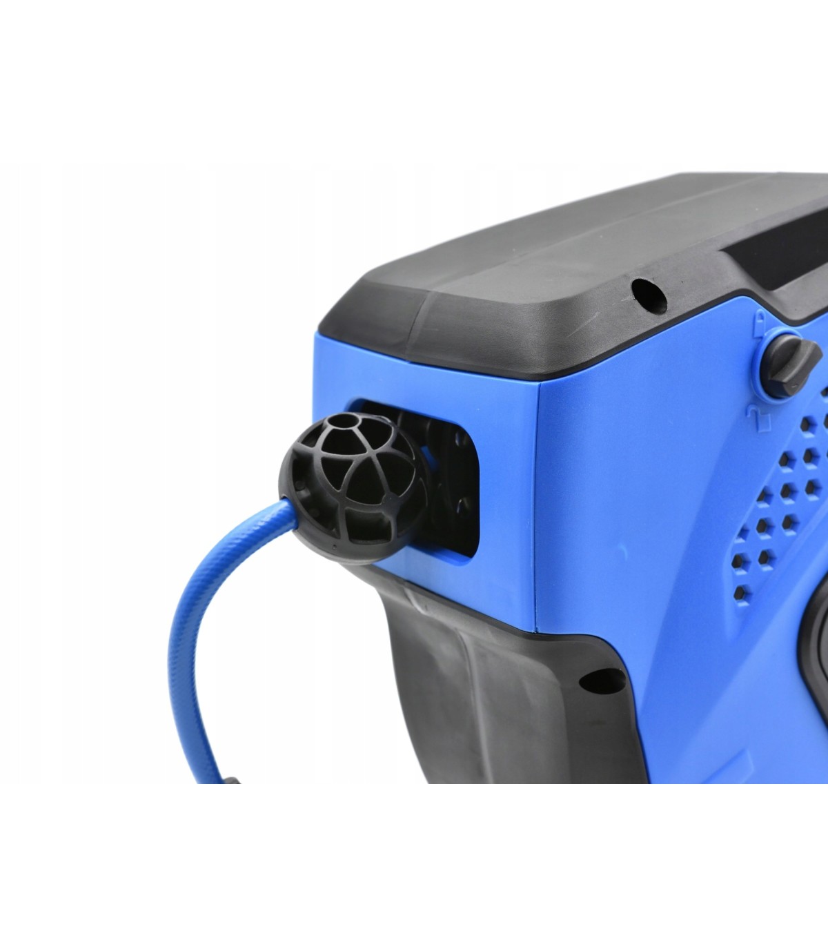 Wykonany z wysokiej jakości zbrojonego tworzywa PVC. Charakteryzuje się duża odpornością na wysokie ciśnienie. Zwijacz wyposażony w blokadę zapobiegającą samoistnemu zwijaniu się węża, oraz wieszak pozwalający na zawieszenia węża na ścianie.