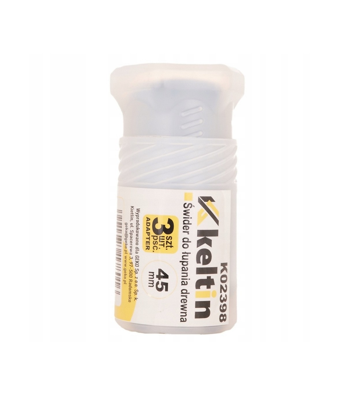 Wiertło - świder o średnicy 45 mm to niezawodne narzędzie do łupania drewna, które zapewnia efektywne i precyzyjne wiercenie. Wykonane ze stali węglowej, to wiertło jest trwałe i odporne na obciążenia podczas pracy. W zestawie znajdziesz 3 adaptery do wiertła, w tym 2x SDS i 1x klasyczne sześciokątne, co pozwala na wszechstronne wykorzystanie narzędzia w różnych rodzajach wiertarki. Dodatkowo, wiertło jest praktycznie zapakowane w plastikowe zakręcane pudełko, co ułatwia przechowywanie i transport.