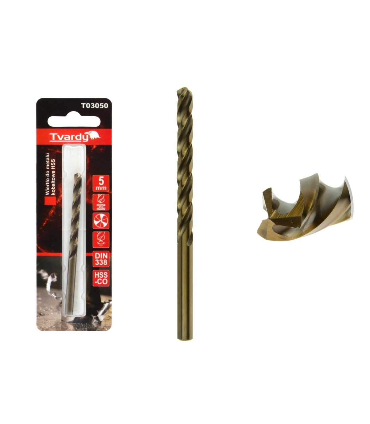 Wiertło profesjonalnej marki narzędziowej Tvardy ze stali szybkotnącej HSS M35 z dodatkiem 5% kobaltu. Wiertła zgodne z normą DIN 338. Uchwyt cylindryczny.