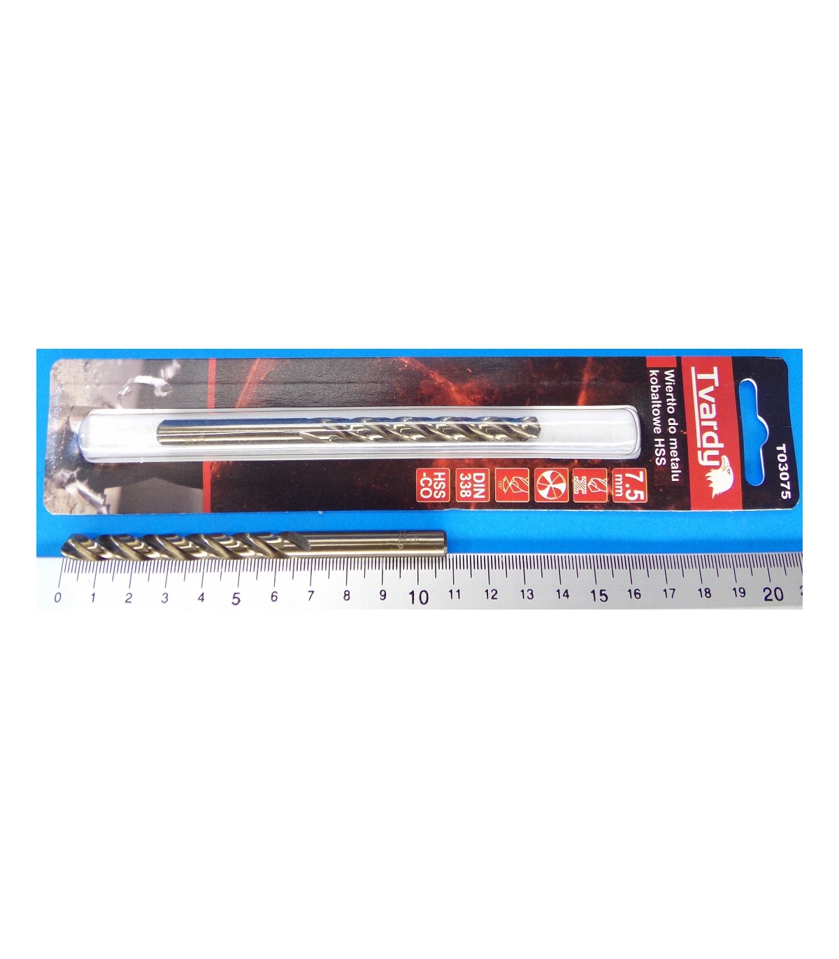 Wiertło profesjonalnej marki narzędziowej Tvardy ze stali szybkotnącej HSS M35 z dodatkiem 5% kobaltu. Wiertła zgodne z normą DIN 338. Uchwyt cylindryczny.
