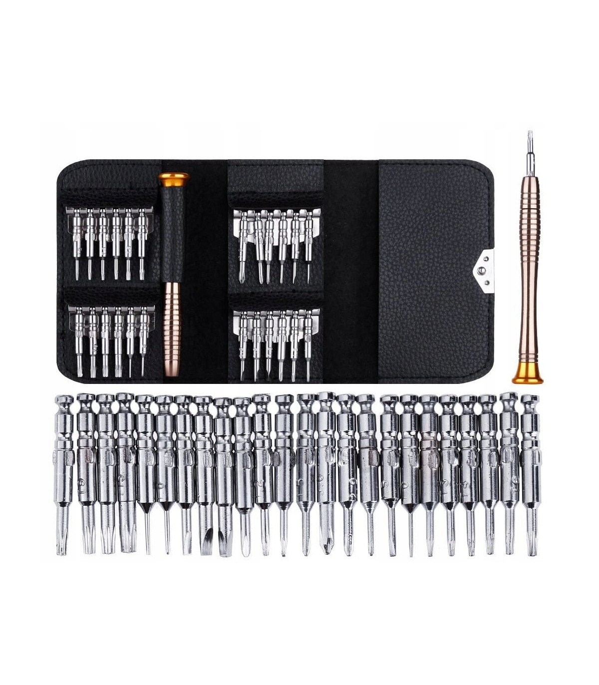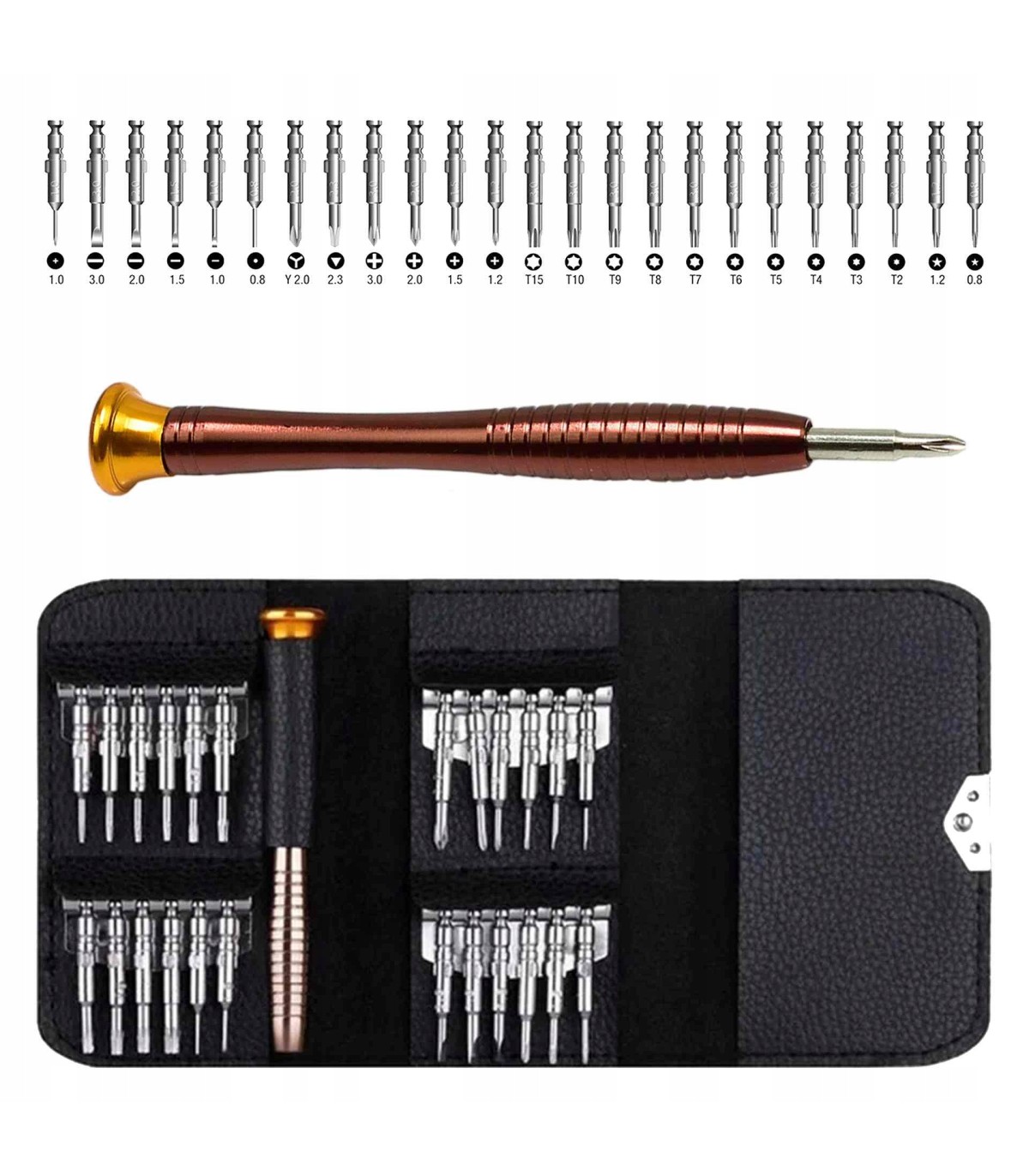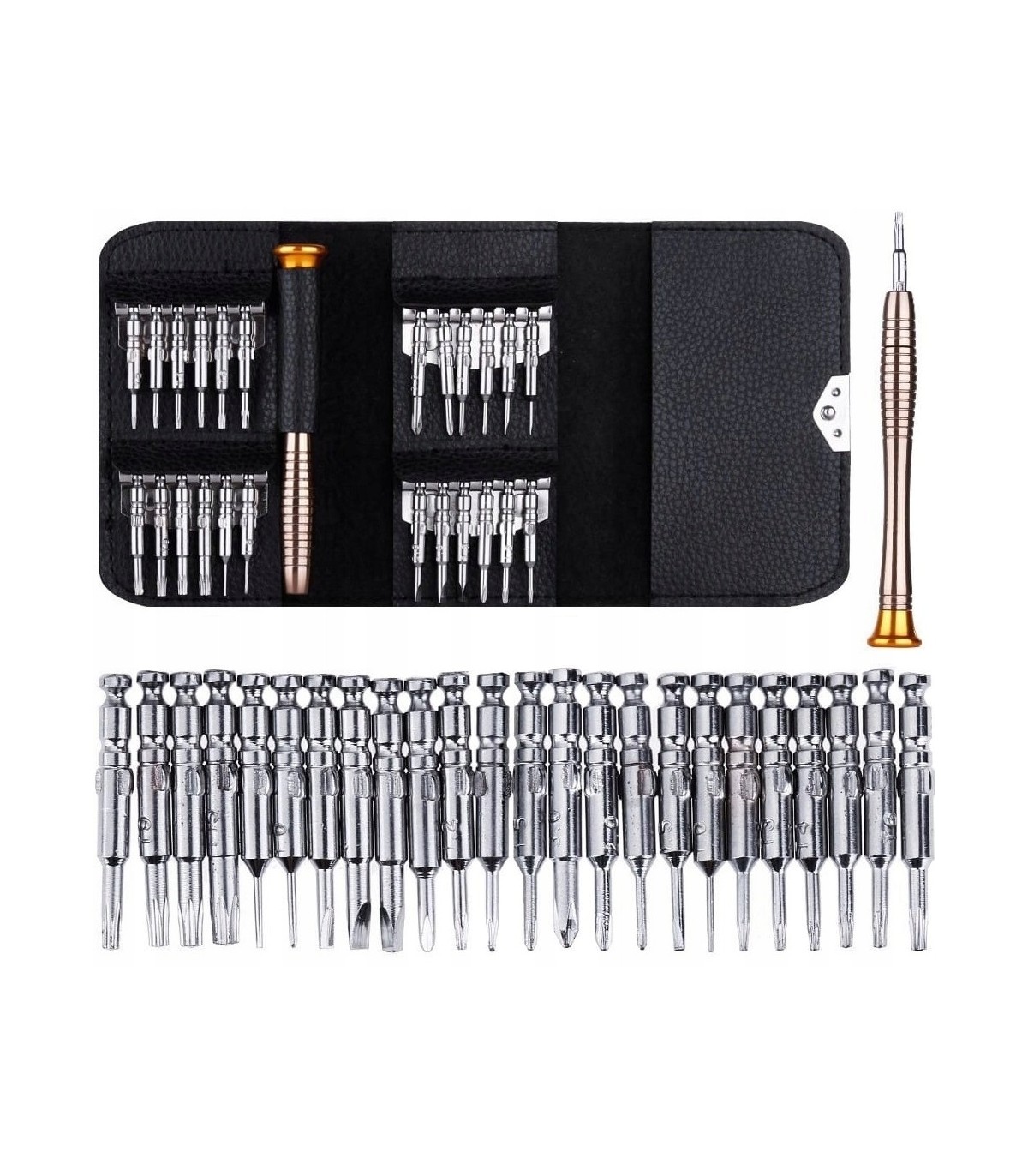 ⭐ Profesjonalny zestaw wkrętaków precyzyjnych 25w1, stworzony z myślą o dokładnych i wymagających pracach. Idealny do napraw telefonów, komputerów, aparatów fotograficznych, zegarków, okularów oraz innych urządzeń elektronicznych, gdzie liczy się precyzja i pewny chwyt.