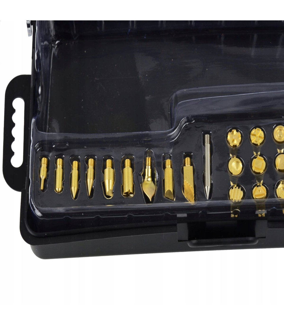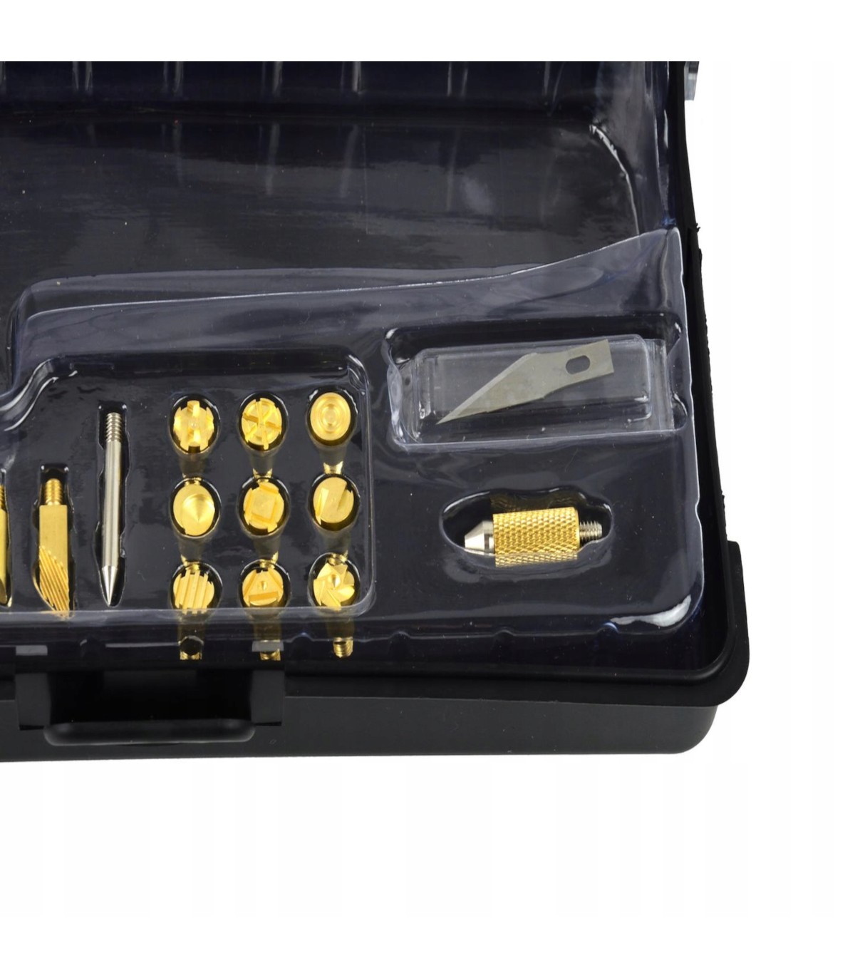 ⭐ Wypalarka do drewna, skóry i korka o mocy 30W z bogatym zestawem 22 wymiennych końcówek. Idealna dla majsterkowiczów, artystów i hobbystów, którzy chcą tworzyć unikalne zdobienia, dekoracje i personalizowane projekty.
