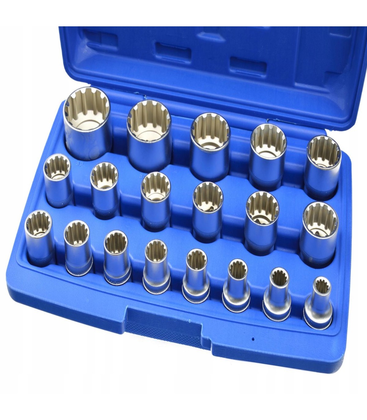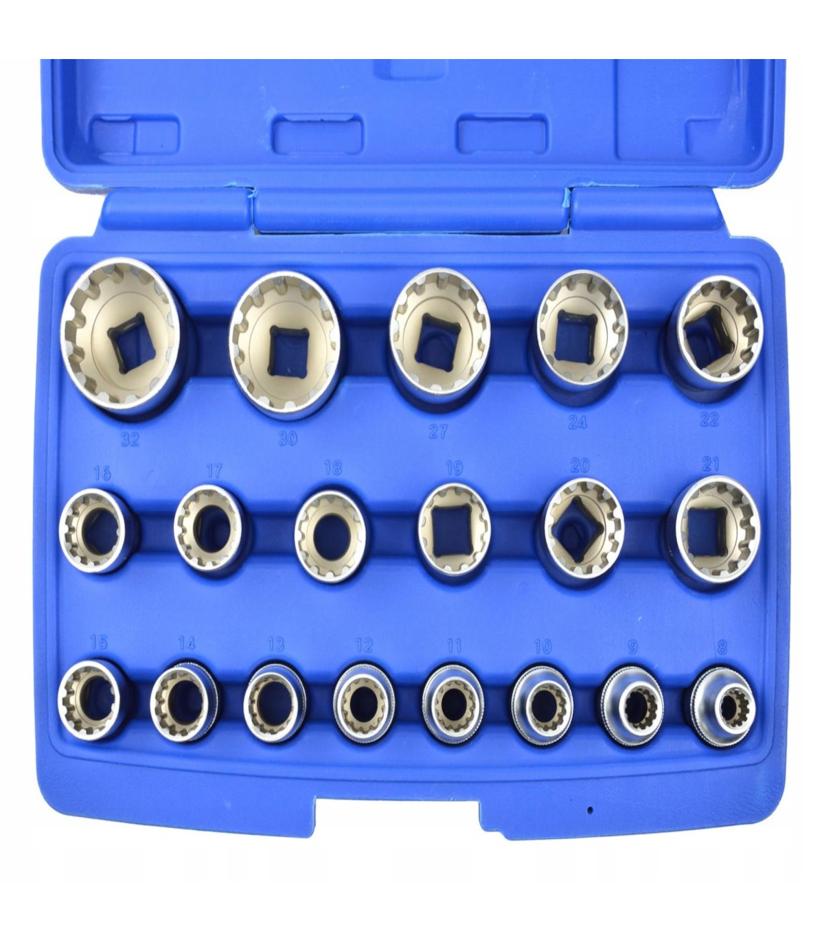 ⭐ Profesjonalny zestaw 12-kątnych nasadek o profilu Gear Lock, przeznaczony do pracy z różnego rodzaju śrubami – zarówno sześciokątnymi, dwunastokątnymi, calowymi, jak i profilami typu Torx-E. Dzięki swojej wszechstronności sprawdzi się w warsztacie samochodowym, serwisie technicznym oraz domowym garażu.