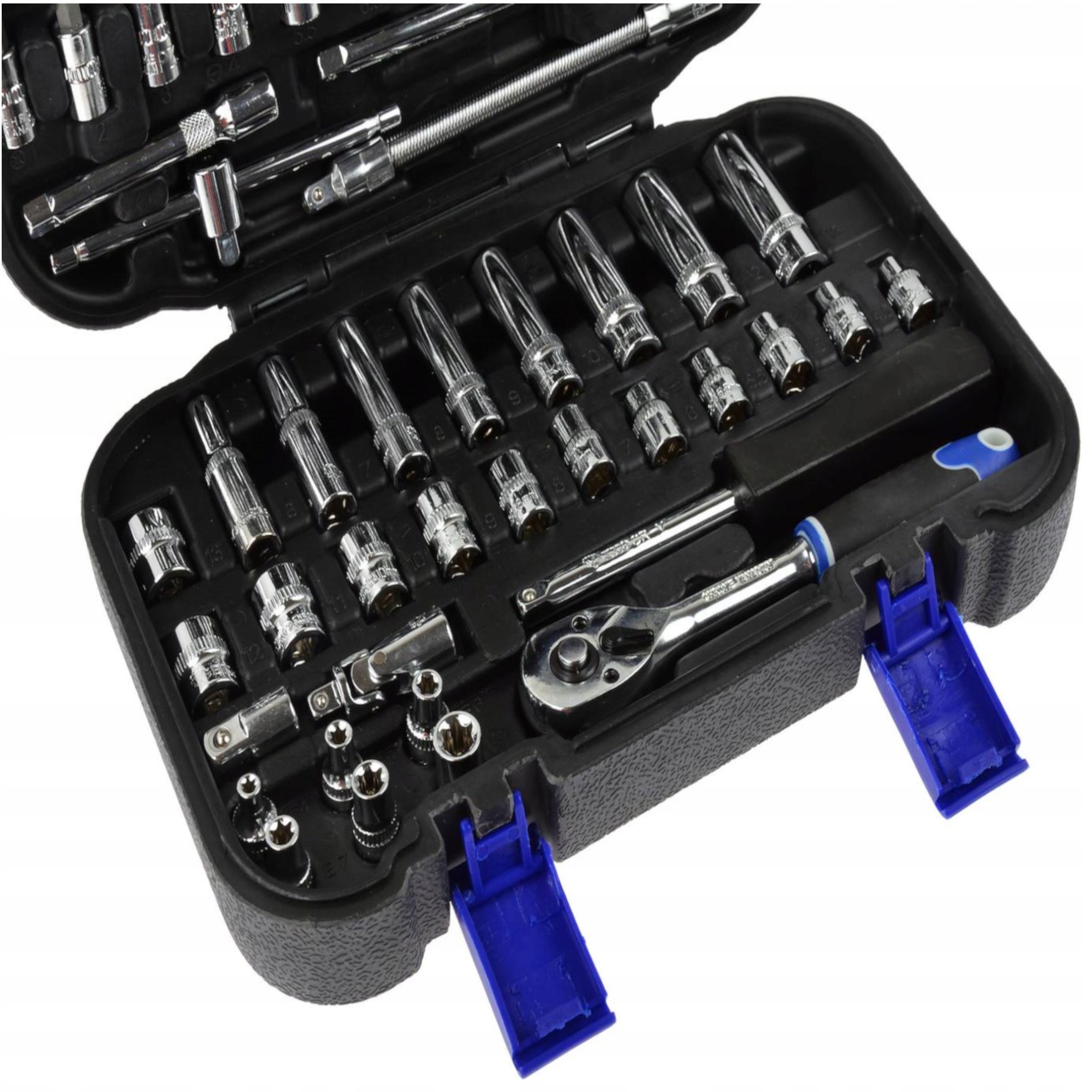 ⭐ Profesjonalny zestaw kluczy nasadowych i bitów 1/4" składający się z 56 starannie dobranych elementów, które zaspokoją potrzeby zarówno majsterkowicza, jak i fachowca. Wszystkie komponenty wykonano z wytrzymałej stali chromowo-wanadowej (CrV), co zapewnia długą żywotność i odporność na uszkodzenia.