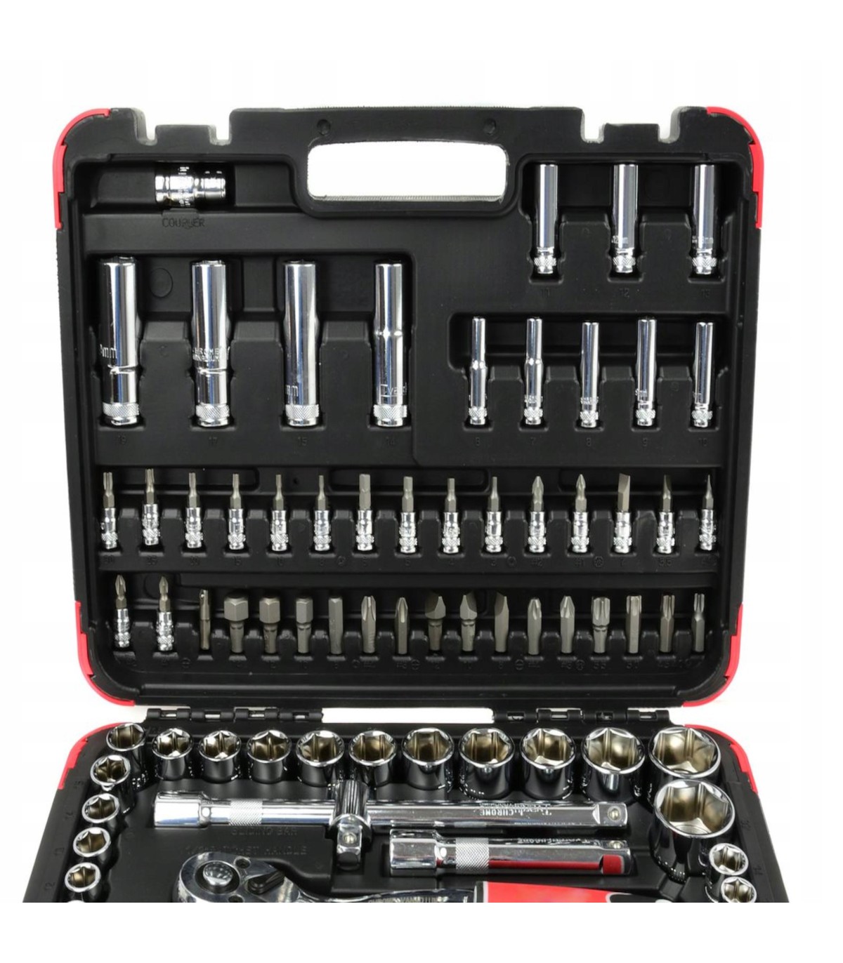 ⭐ Profesjonalny zestaw kluczy nasadowych 94 el. to niezawodne narzędzie zarówno dla mechaników, jak i majsterkowiczów, którzy oczekują najwyższej jakości. Wykonany z wytrzymałej stali chromowo-wanadowej CrV50BV30, gwarantuje odporność na zużycie, uszkodzenia i korozję. Bity wykonano z utwardzanej stali S2, co zapewnia im długą żywotność nawet przy intensywnej eksploatacji. W skład zestawu wchodzą dwie odgięte grzechotki 1/2" i 1/4" z precyzyjnym mechanizmem zapadkowym (72 zęby), umożliwiające płynną pracę nawet w ciasnych miejscach. Całość zapakowana jest w solidną, poręczną walizkę z tworzywa sztucznego z dedykowanym miejscem na każdy element.