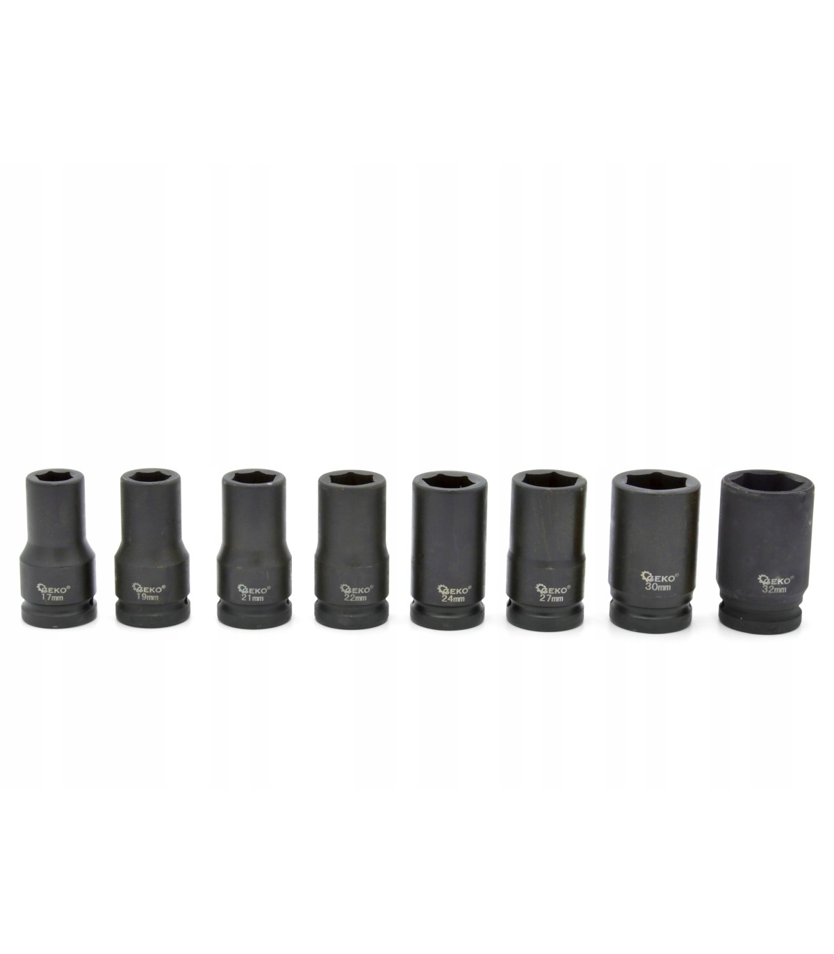 Zestaw nasadek udarowych 3/4" sześciokątnych długich, składa się z 8 nasadek. Zawiera sześciokątne nasadki udarowe w rozmiarach od 17 do 32 mm.