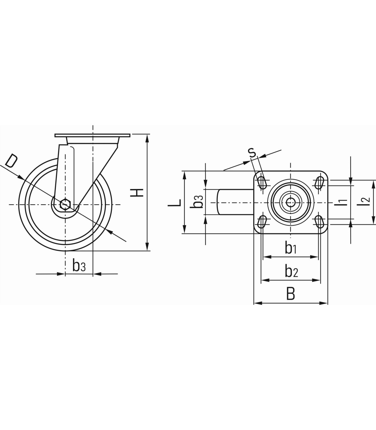 Koło obrotowe o średnicy 50mm. Rdzeń koła wykonany z wytrzymałego tworzywa polipropylenowego (PP), opona natomiast z wysokiej jakości gumy która poprawia przyczepność koła a także zapobiega rysowaniu podłoża.