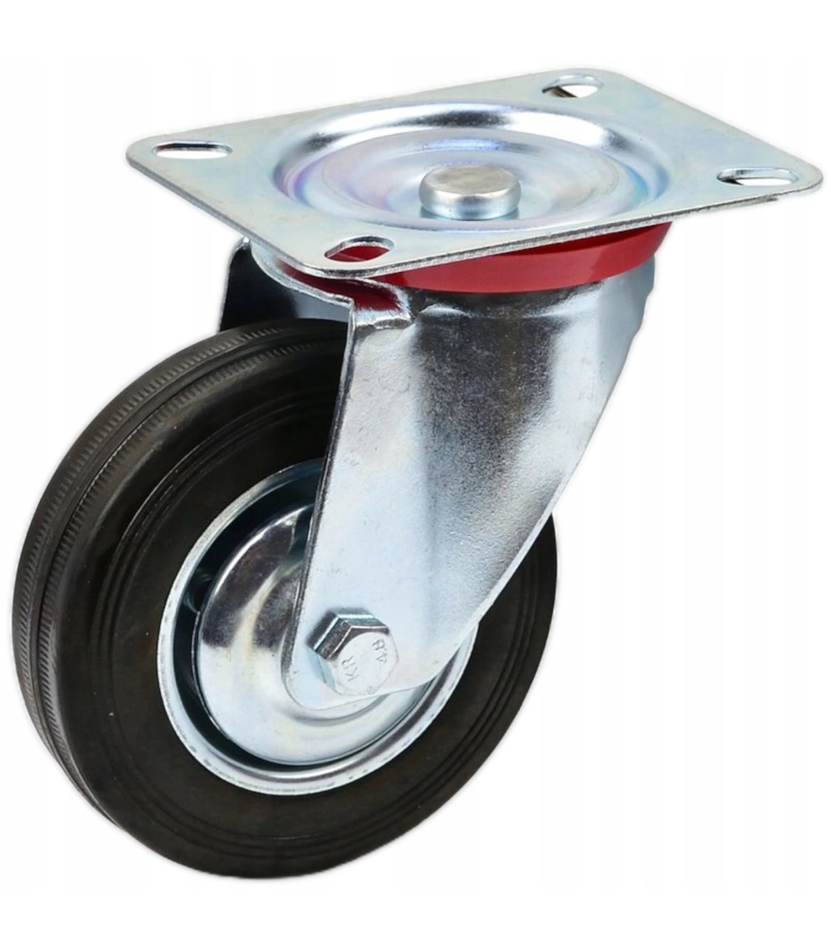 KOŁO OBROTOWE 160 MM ZE STALOWĄ FELGĄ I OPONĄ GUMOWĄ – OBCIĄŻENIE 150 KG