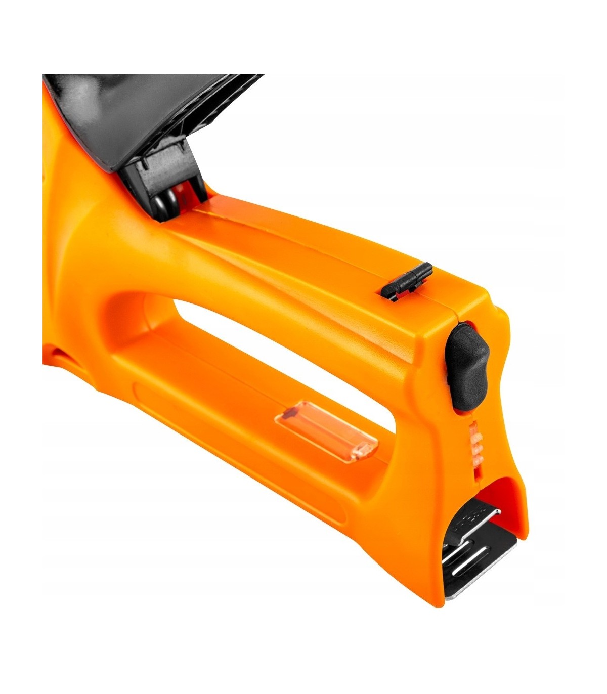 Zszywacz tapicerski na zszywki typu J, o rozmiarze od 4 do 8 mm. Doskonale sprawdza się w pracach tapicerskich, dekoratorskich, w mocowaniu folii, skóry i innych materiałów.