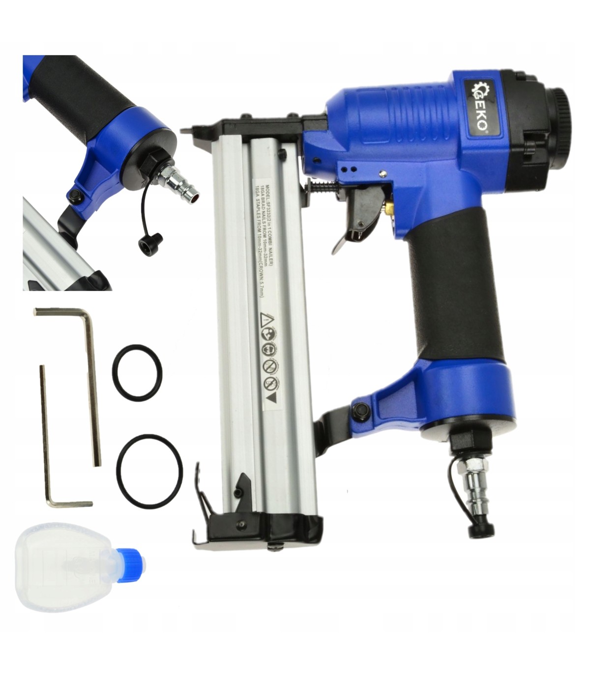 ✅ Pneumatyczny zszywacz / gwoździarka 2w1 przeznaczony do wykonywania różnego rodzaju prac tapicerskich i stolarskich. Zszywaczy wykonany z wysokiej jakości materiałów, ergonomiczna rękojeść powlekana gumą zapewnia komfort i pewny chwyt narzędzia podczas pracy. Narzędzie przystosowane to standardowych zszywek i gwoździ tapicerskich (gwoździe: 10-32mm, zszywki: 16-32mm). Zszywacz wyposażony został w magazynek zdolny pomieścić 100 szt. gwoździ bądź zszywek tapicerskich.